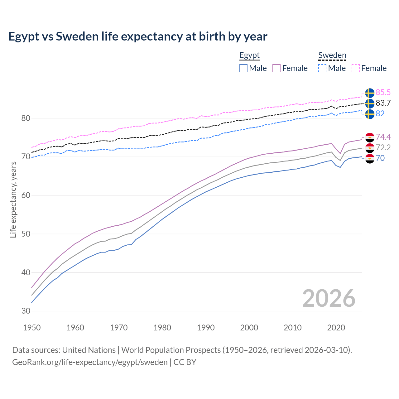 GeoRank.org/life-expectancy/egypt/sweden | CC BY