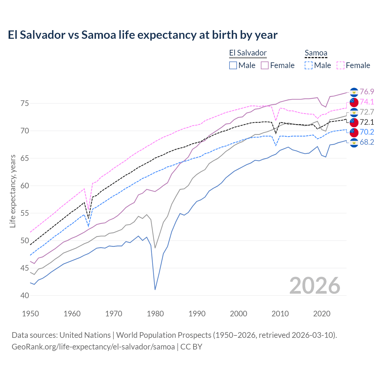 GeoRank.org/life-expectancy/el-salvador/samoa | CC BY