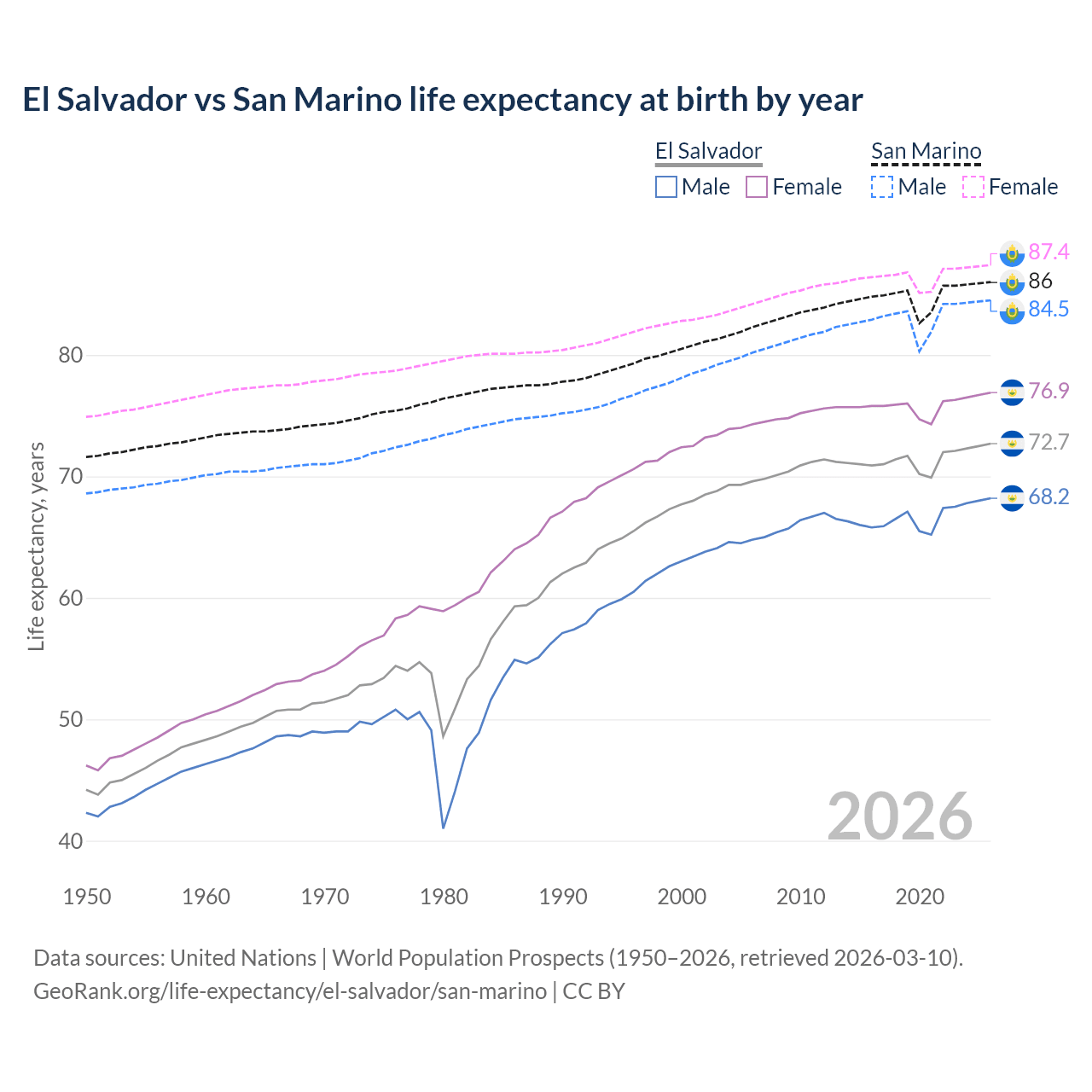 GeoRank.org/life-expectancy/el-salvador/san-marino | CC BY