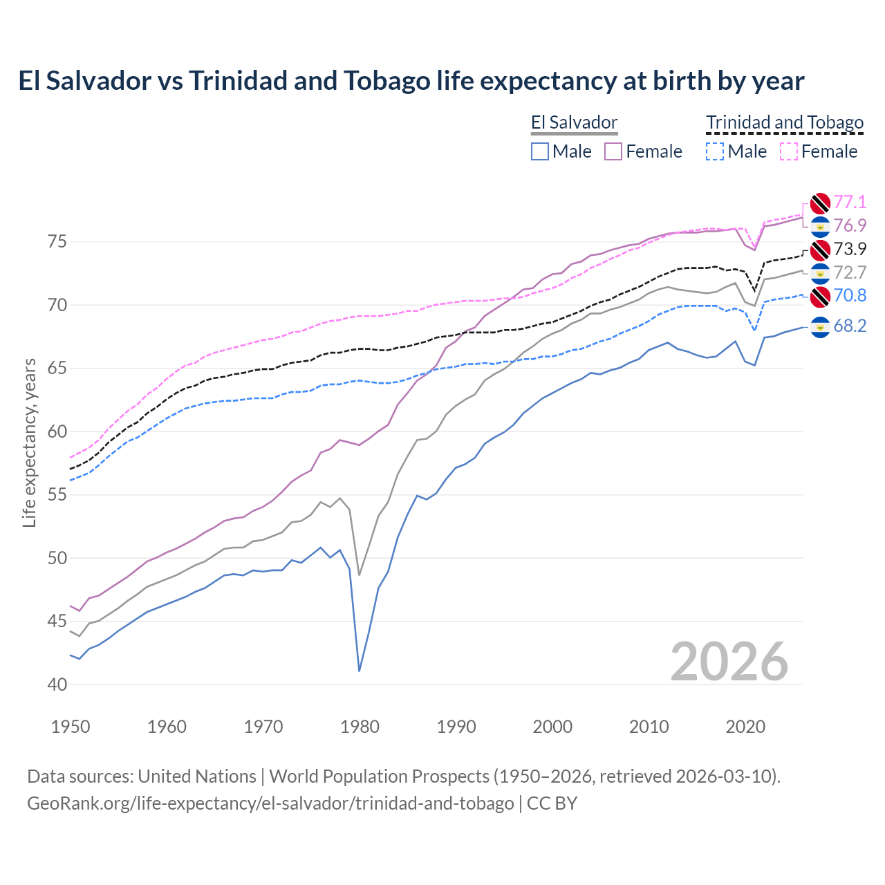El Salvador vs Trinidad and Tobago life expectancy calculator