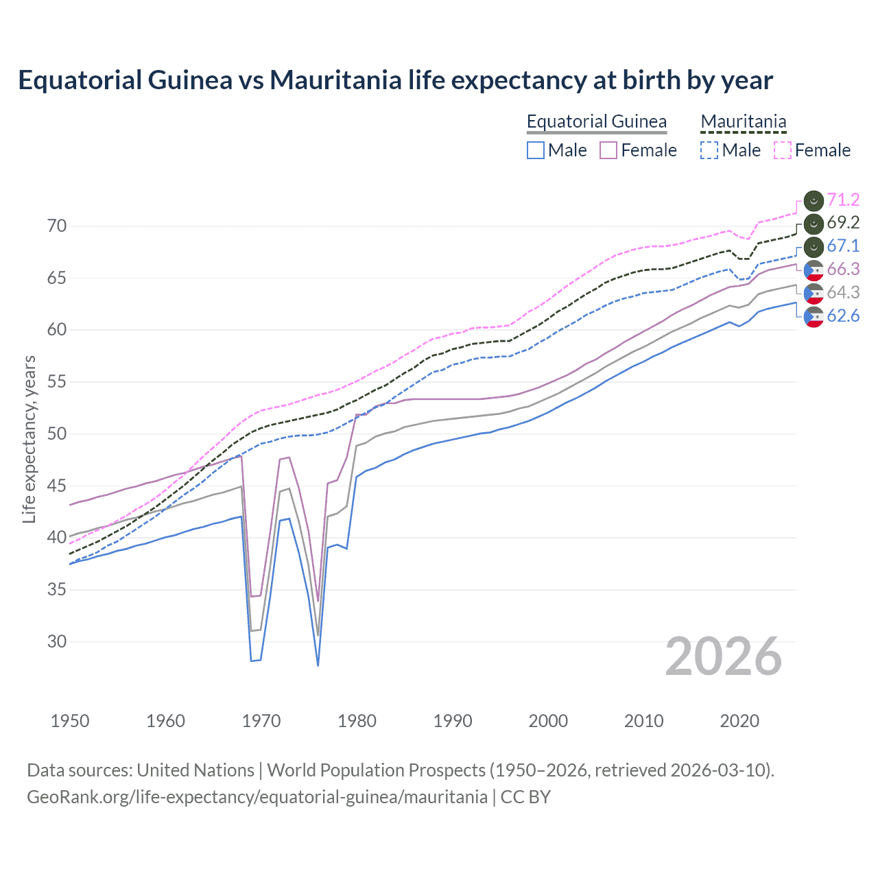 GeoRank.org/life-expectancy/equatorial-guinea/mauritania | CC BY