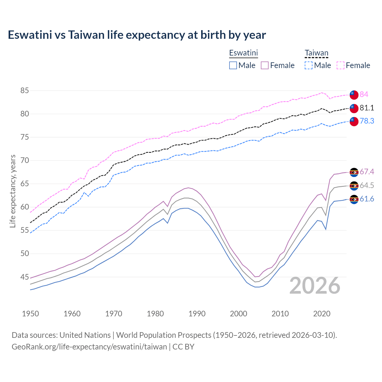 GeoRank.org/life-expectancy/eswatini/taiwan | CC BY