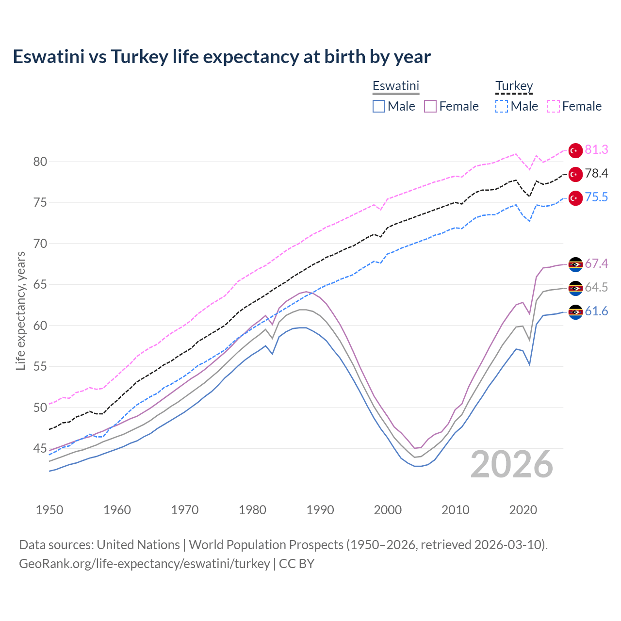 GeoRank.org/life-expectancy/eswatini/turkey | CC BY