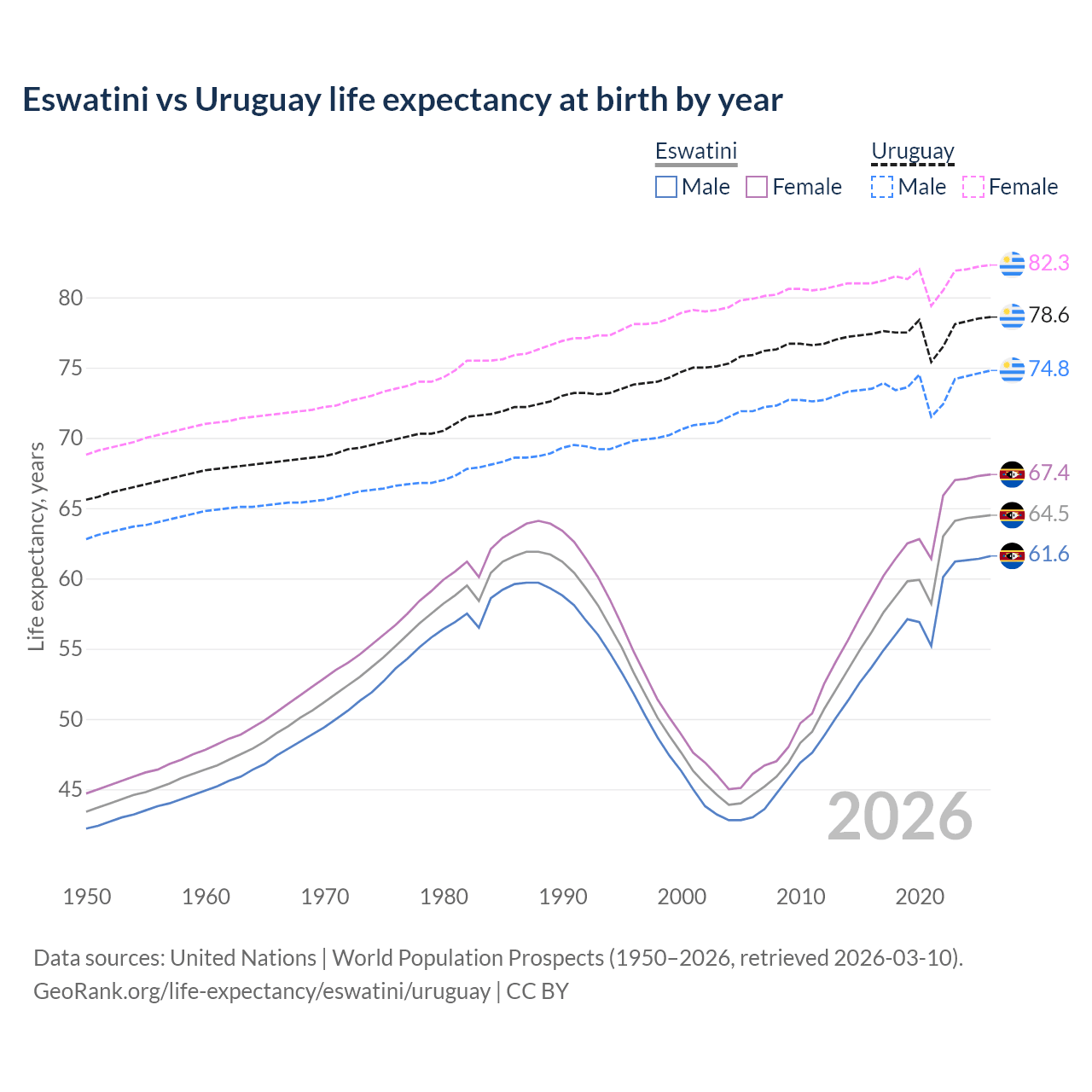 GeoRank.org/life-expectancy/eswatini/uruguay | CC BY