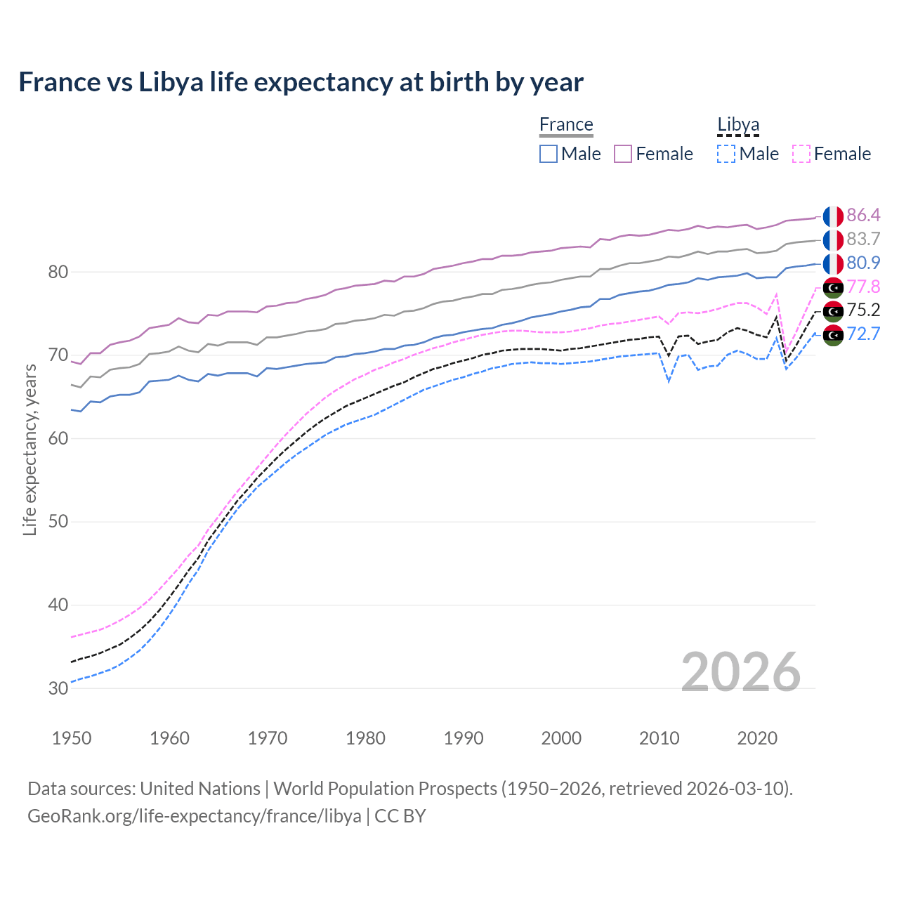 GeoRank.org/life-expectancy/france/libya | CC BY