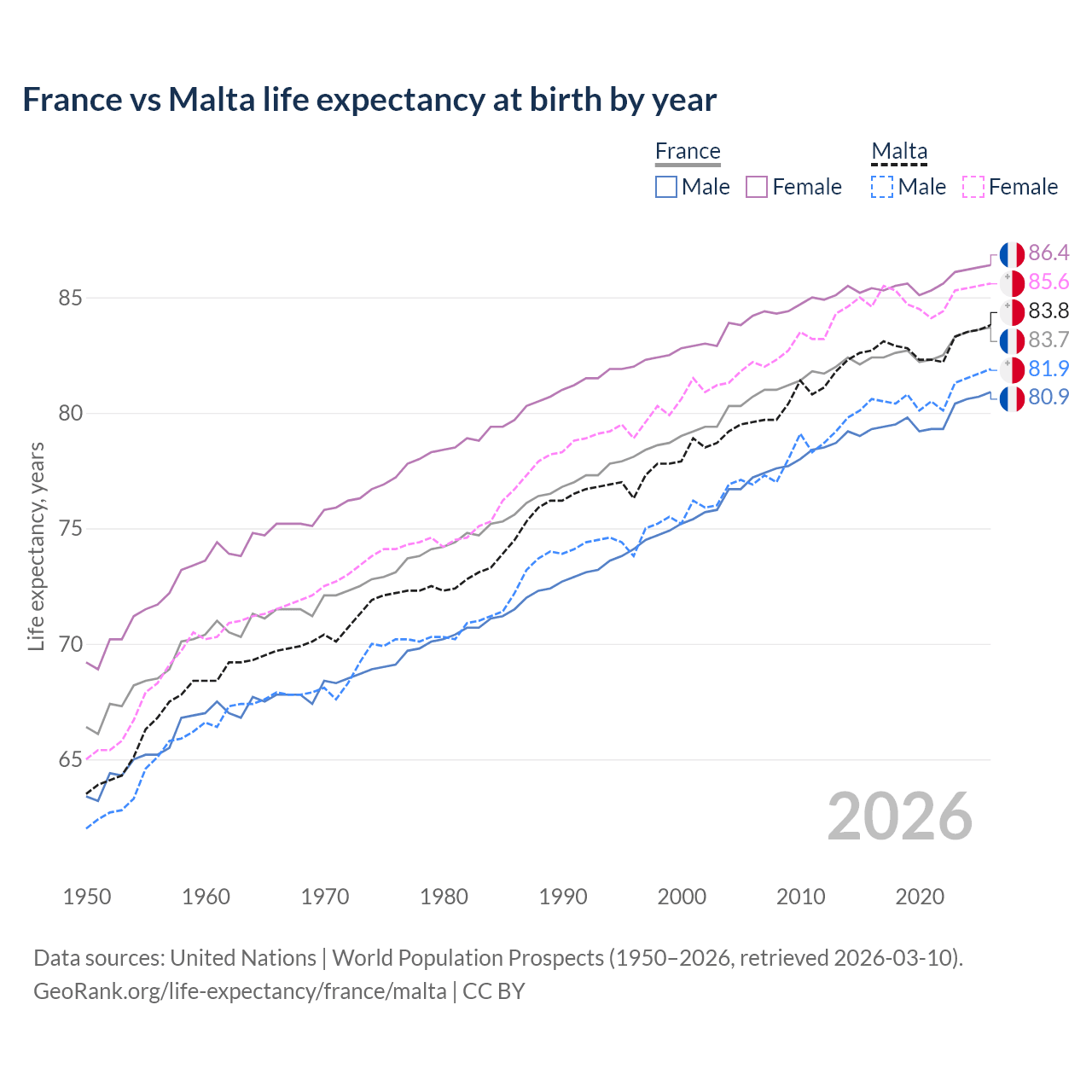 GeoRank.org/life-expectancy/france/malta | CC BY