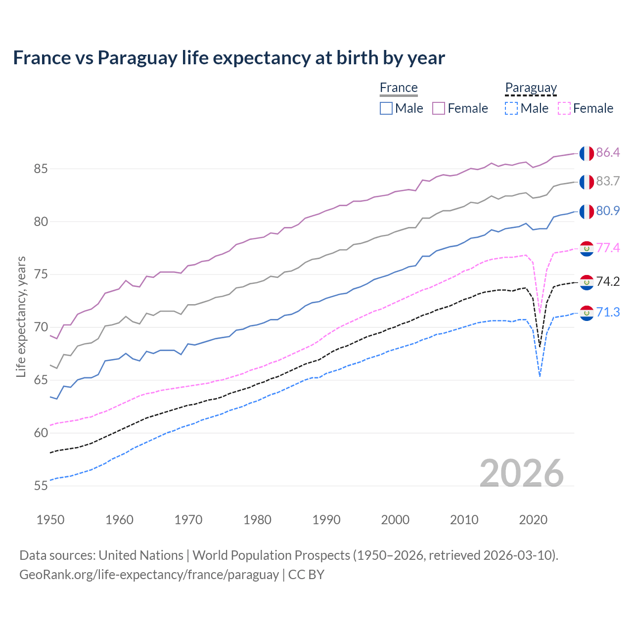GeoRank.org/life-expectancy/france/paraguay | CC BY