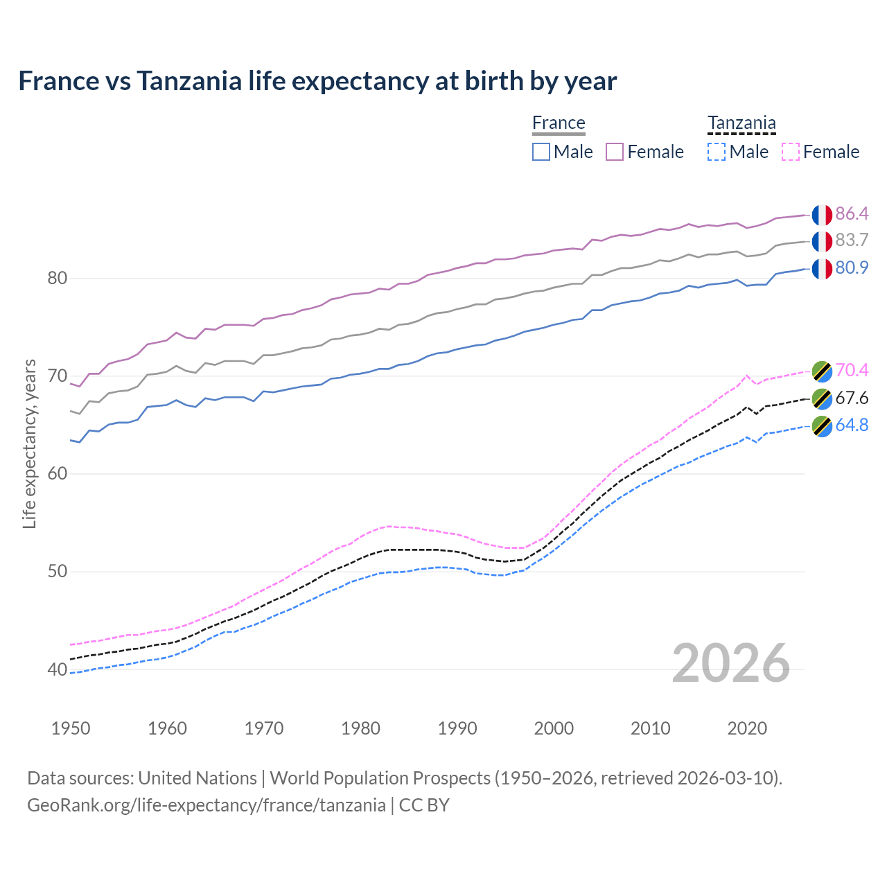 GeoRank.org/life-expectancy/france/tanzania | CC BY