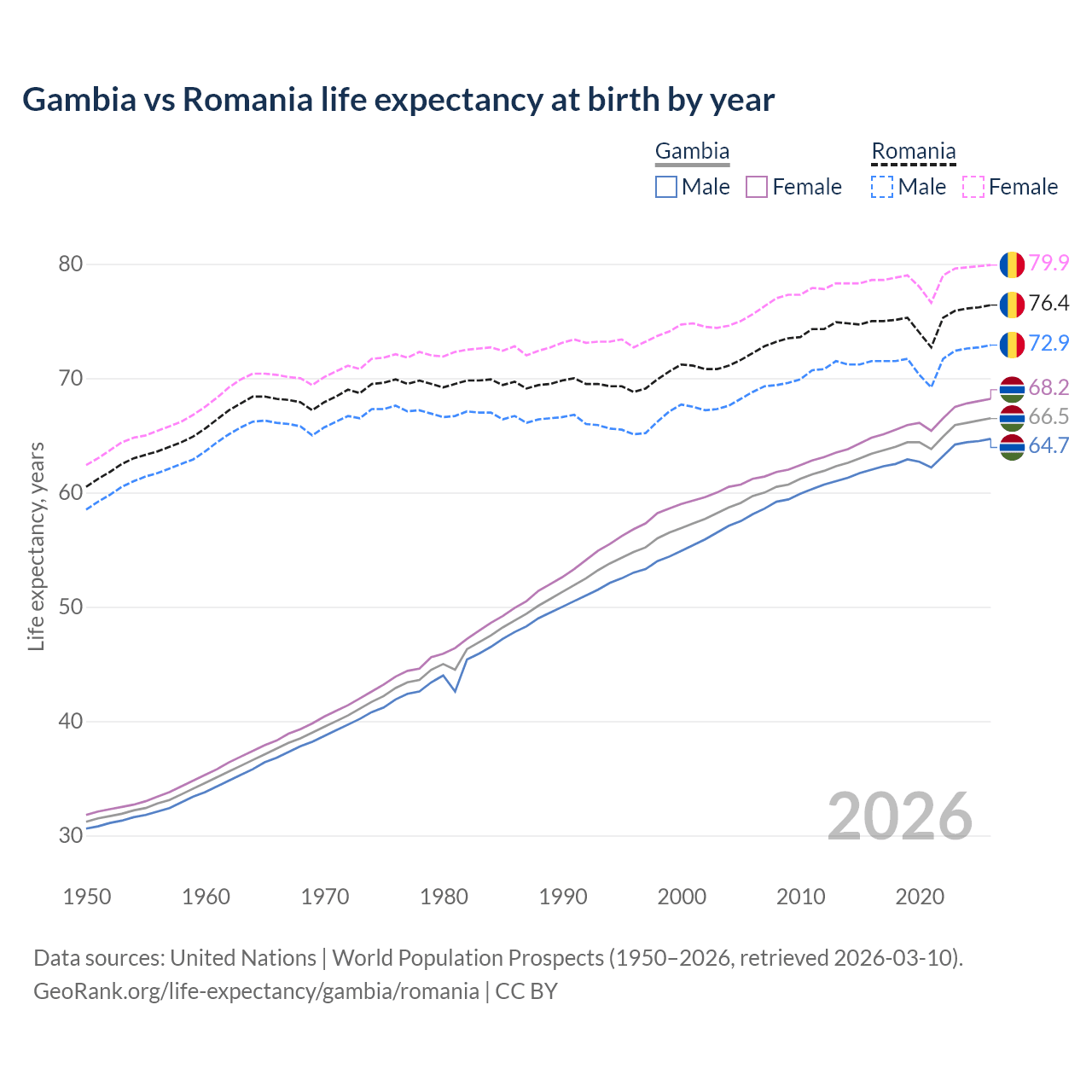 GeoRank.org/life-expectancy/gambia/romania | CC BY