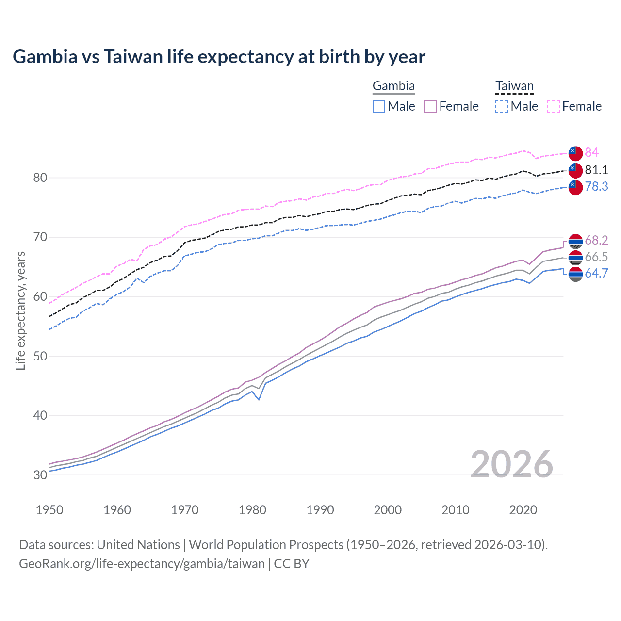 GeoRank.org/life-expectancy/gambia/taiwan | CC BY