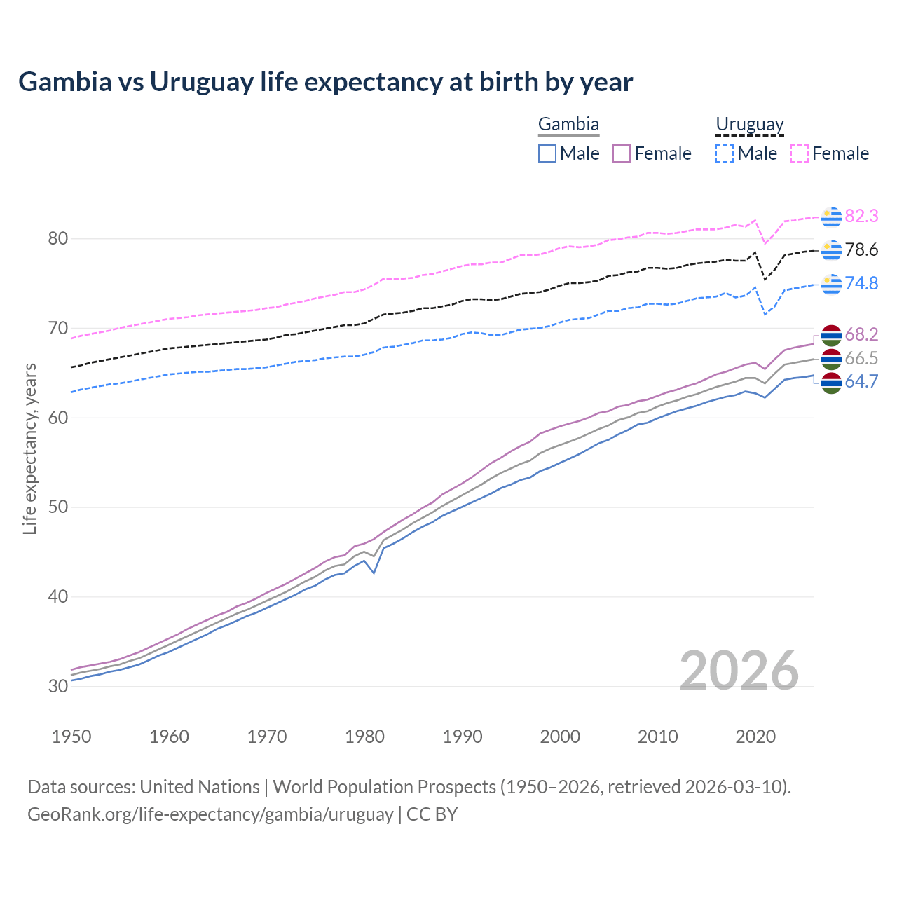 GeoRank.org/life-expectancy/gambia/uruguay | CC BY