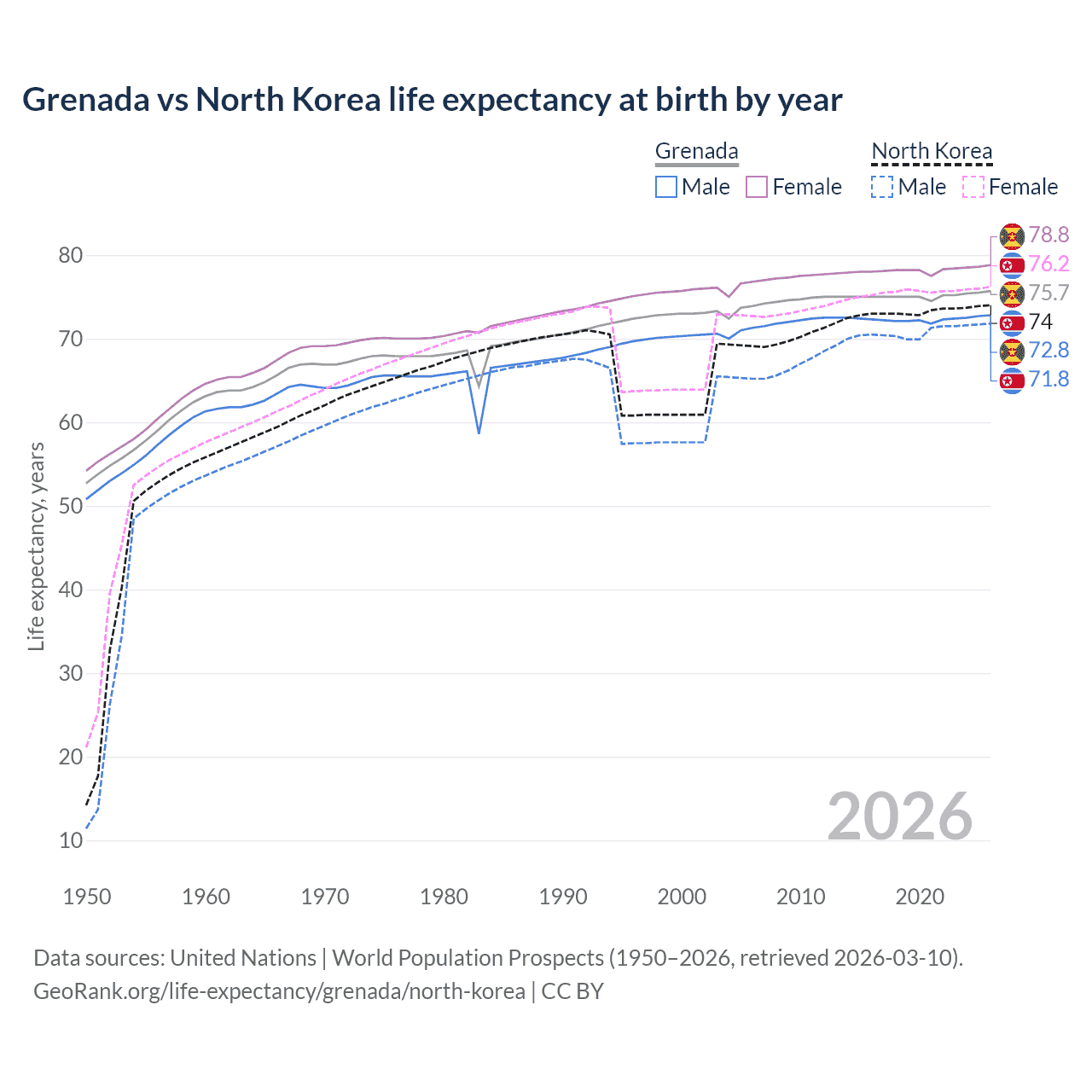 GeoRank.org/life-expectancy/grenada/north-korea | CC BY