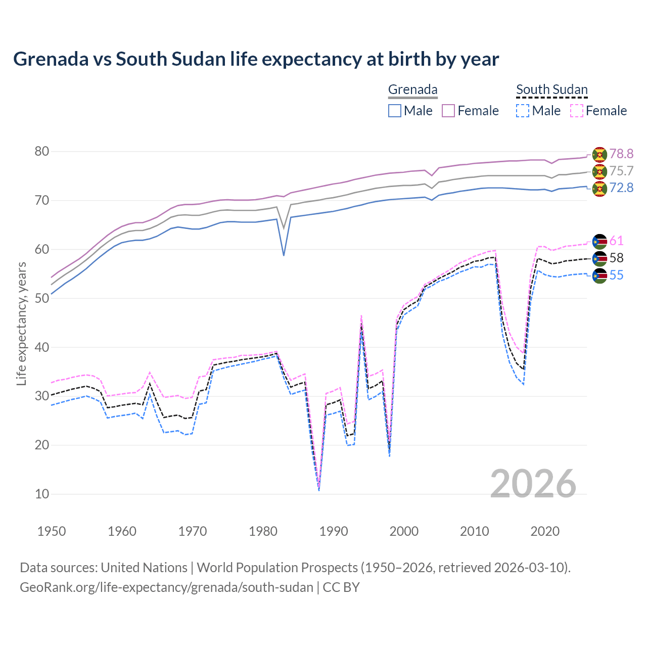GeoRank.org/life-expectancy/grenada/south-sudan | CC BY