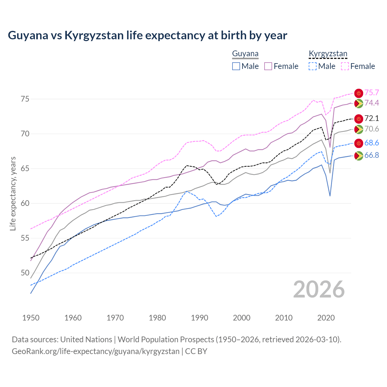 GeoRank.org/life-expectancy/guyana/kyrgyzstan | CC BY