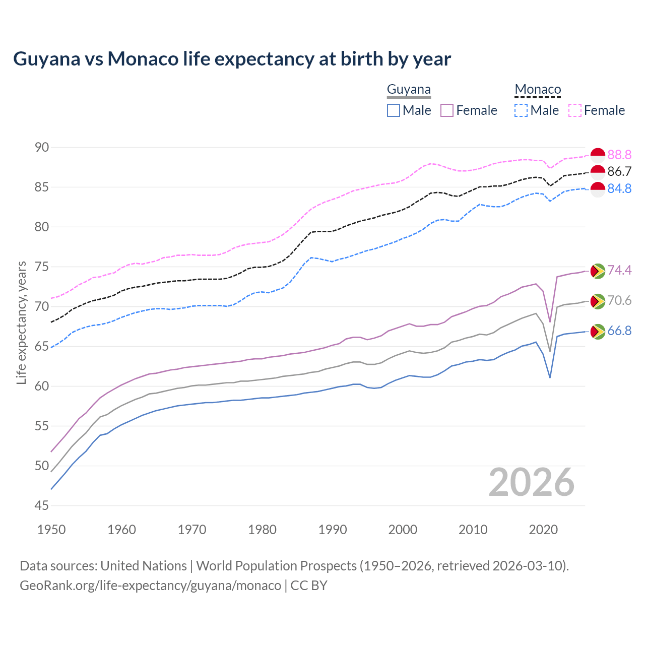GeoRank.org/life-expectancy/guyana/monaco | CC BY
