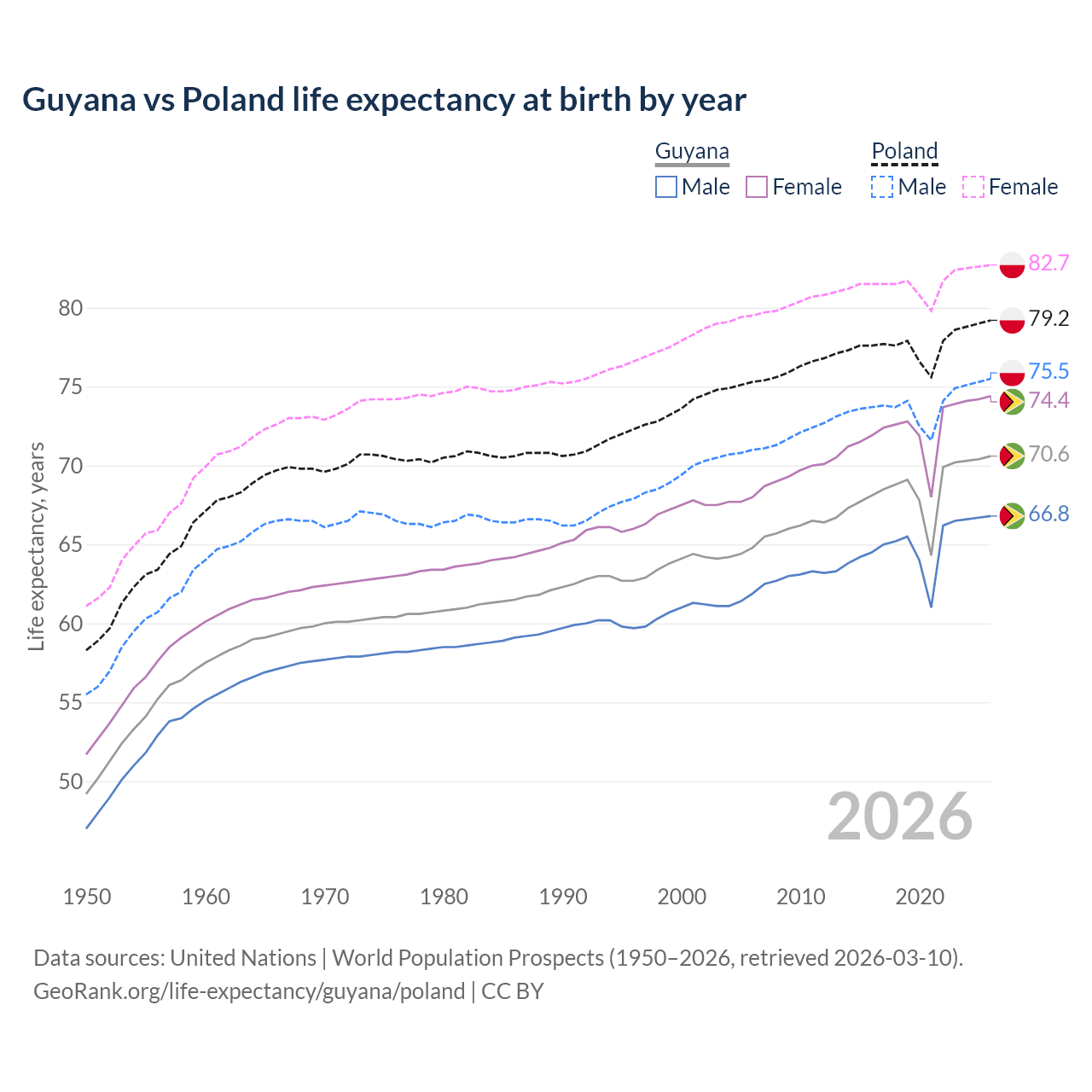 GeoRank.org/life-expectancy/guyana/poland | CC BY