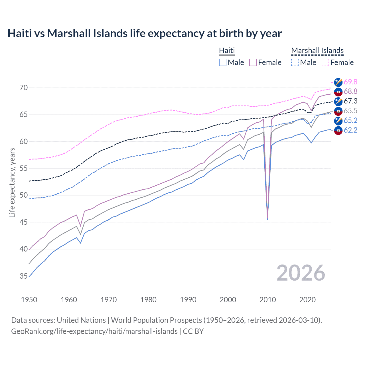 GeoRank.org/life-expectancy/haiti/marshall-islands | CC BY