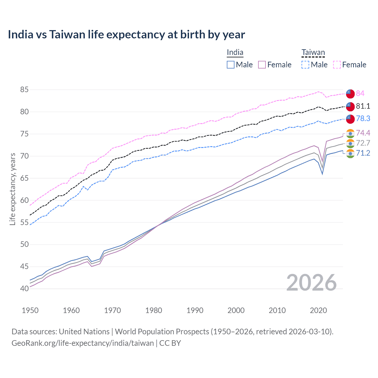 GeoRank.org/life-expectancy/india/taiwan | CC BY
