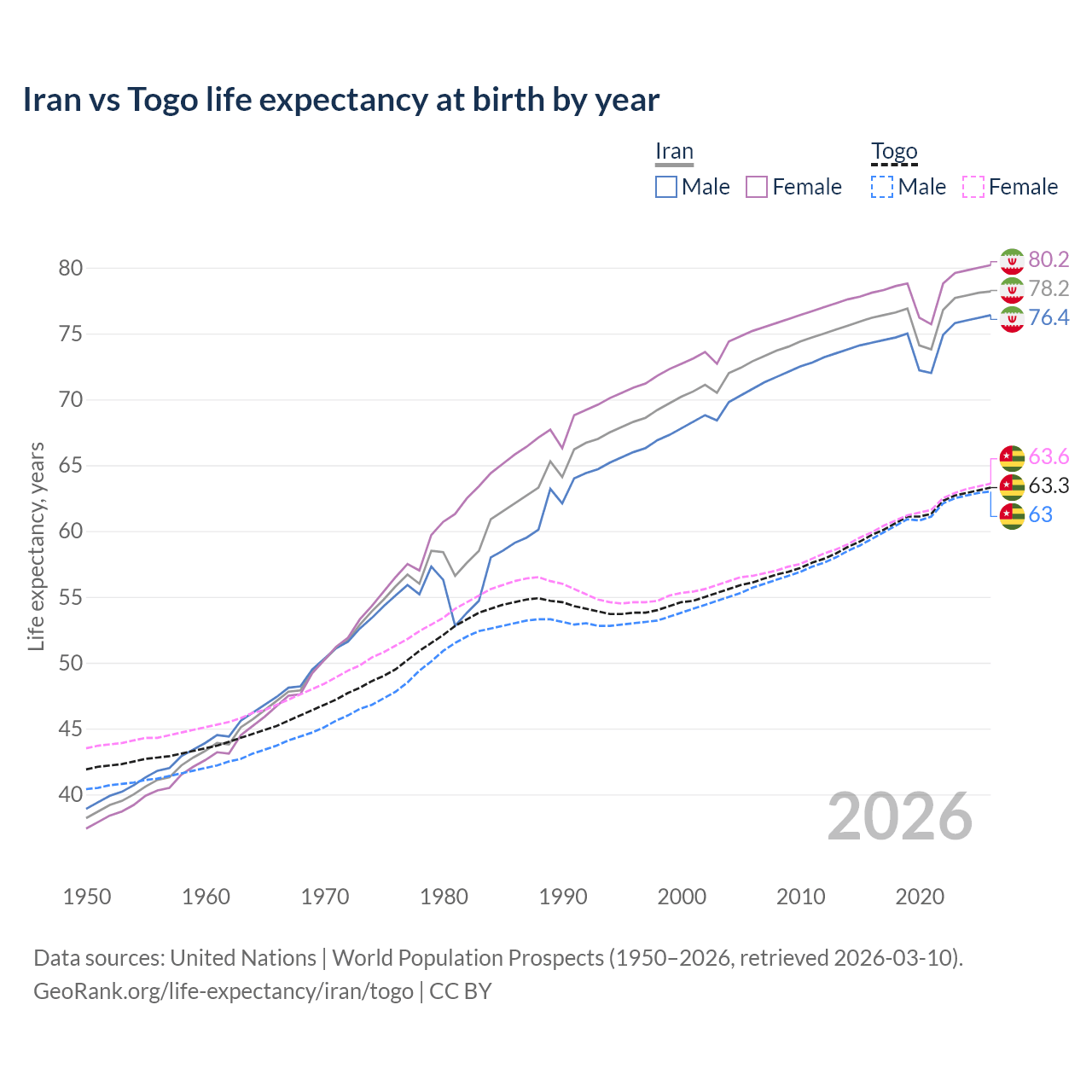 GeoRank.org/life-expectancy/iran/togo | CC BY
