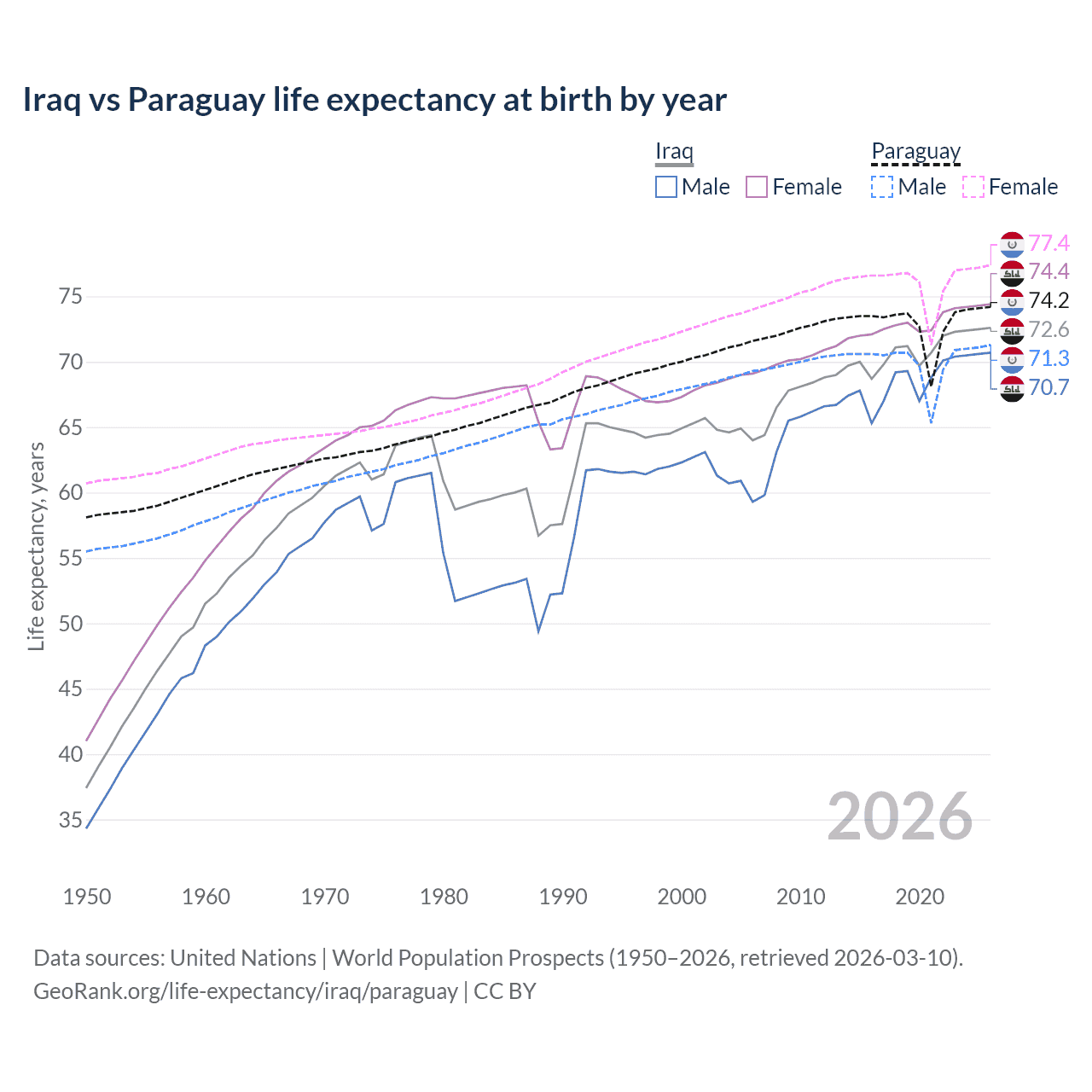 GeoRank.org/life-expectancy/iraq/paraguay | CC BY