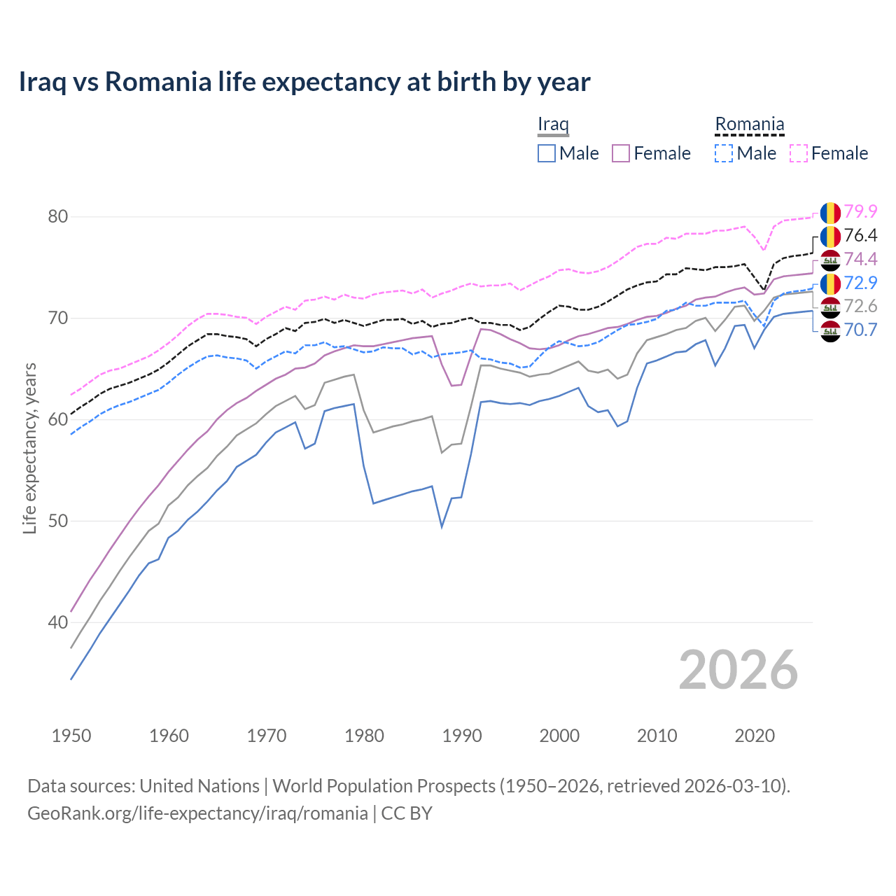 GeoRank.org/life-expectancy/iraq/romania | CC BY