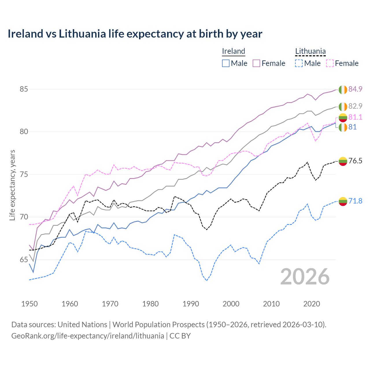 GeoRank.org/life-expectancy/ireland/lithuania | CC BY