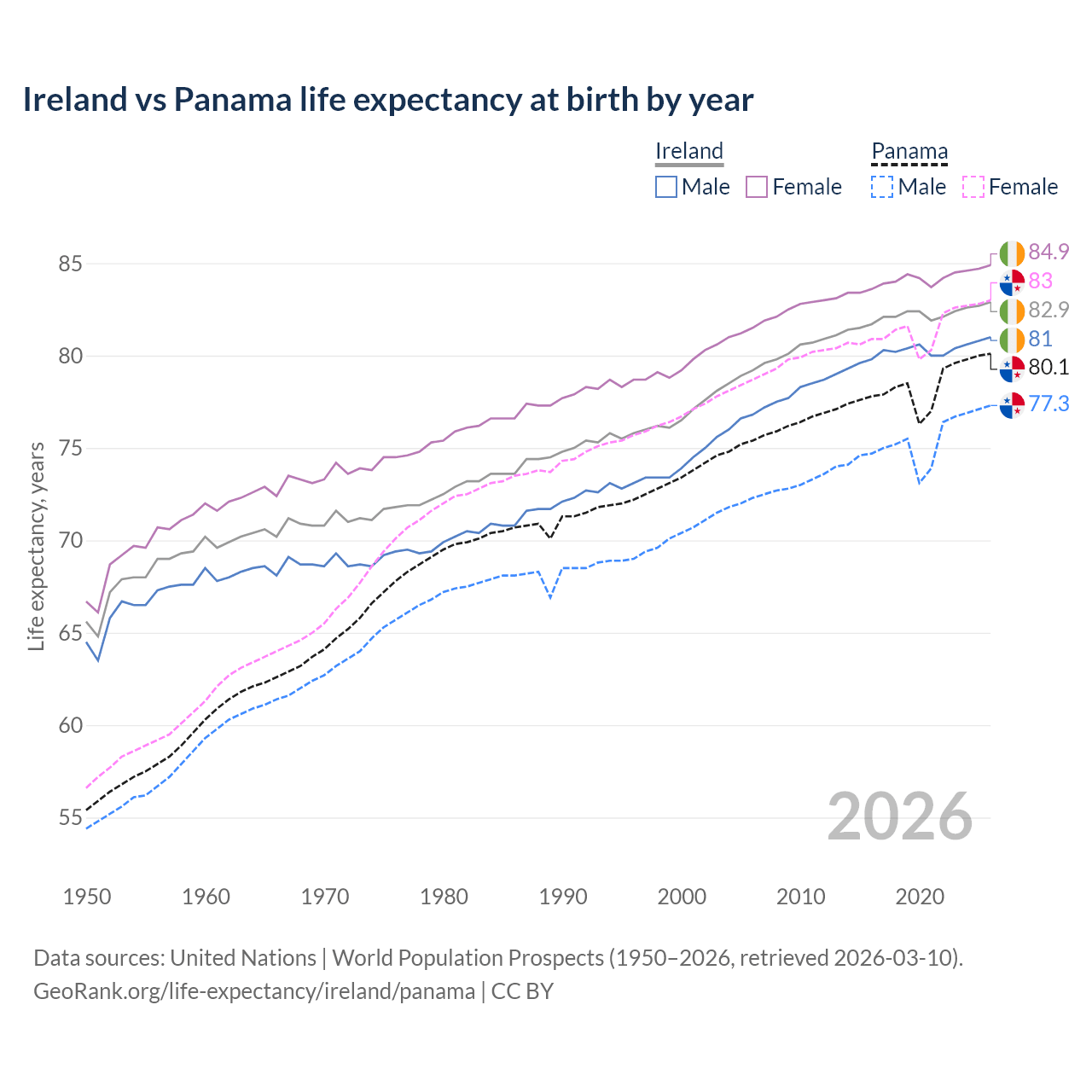 GeoRank.org/life-expectancy/ireland/panama | CC BY