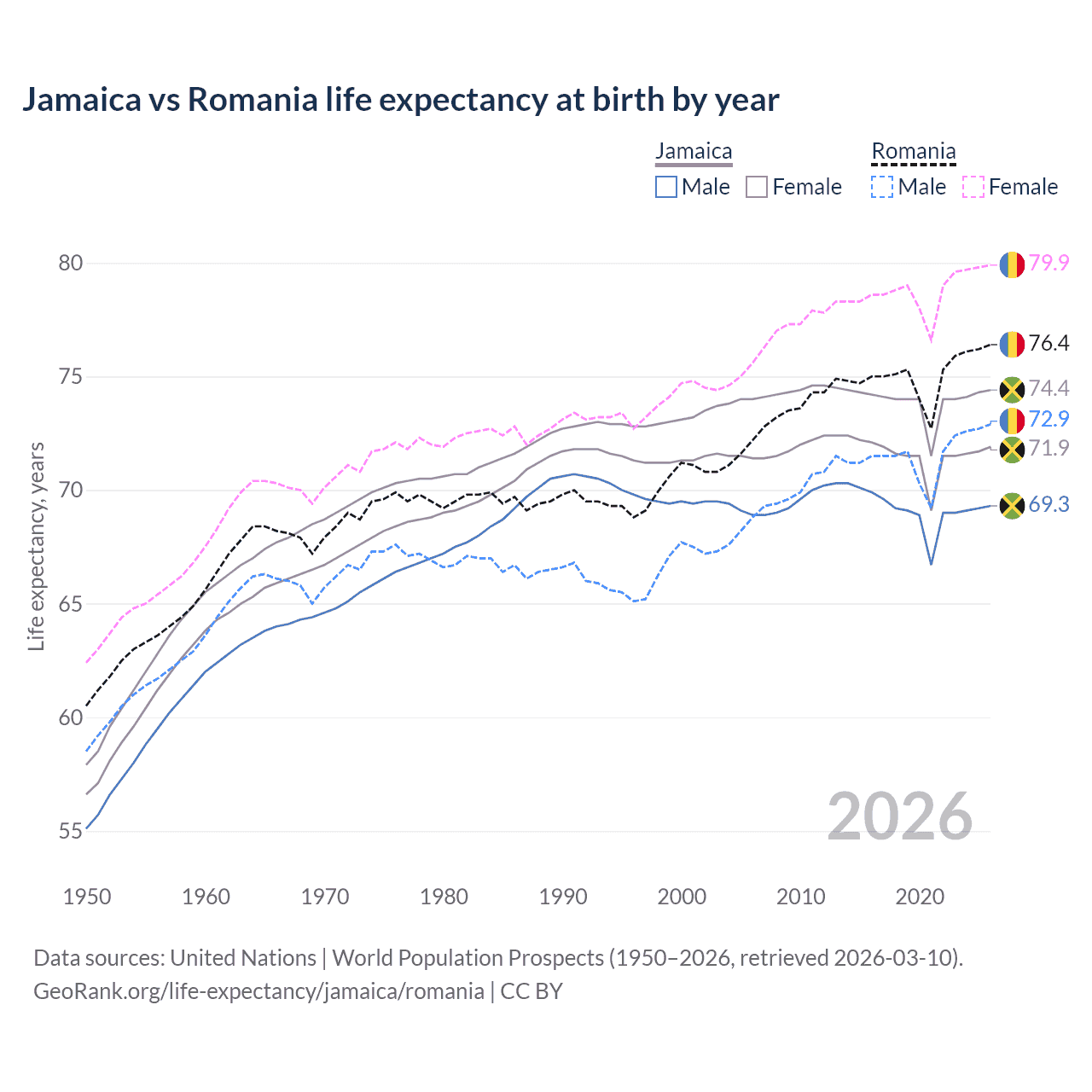 GeoRank.org/life-expectancy/jamaica/romania | CC BY