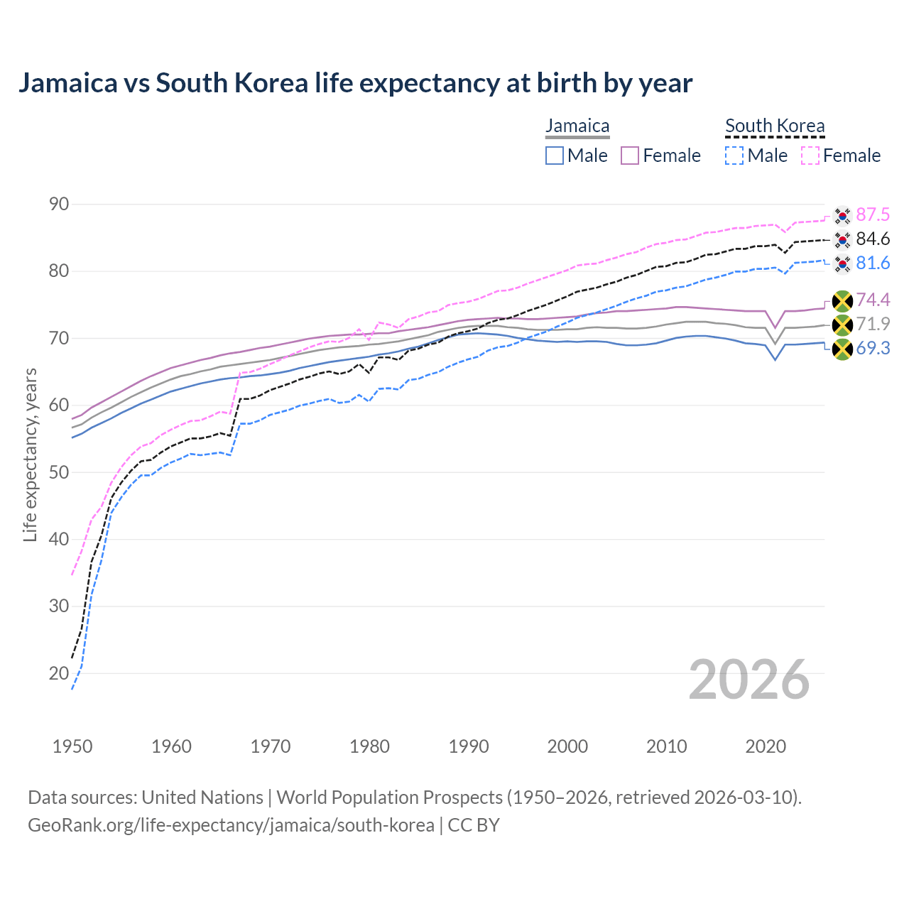 GeoRank.org/life-expectancy/jamaica/south-korea | CC BY