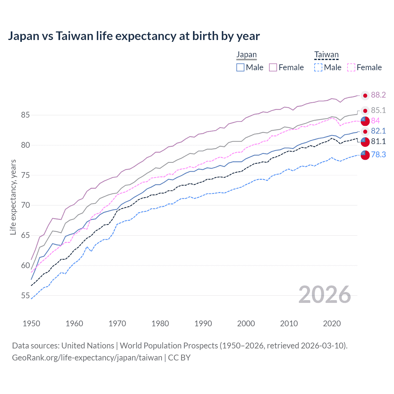 GeoRank.org/life-expectancy/japan/taiwan | CC BY