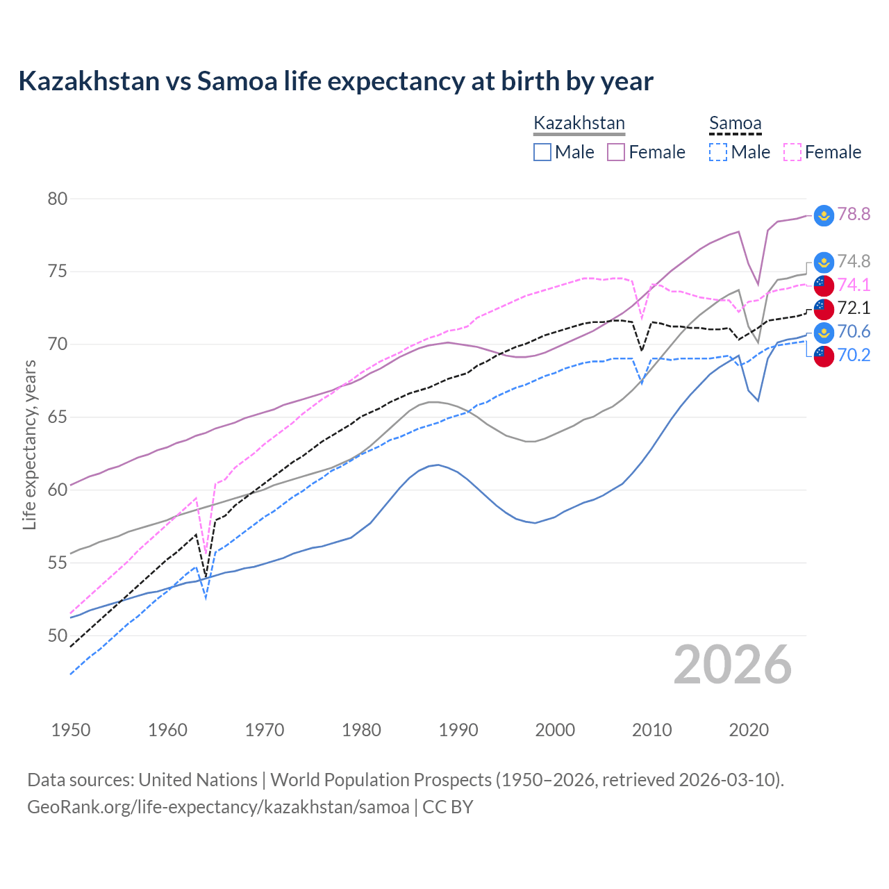 GeoRank.org/life-expectancy/kazakhstan/samoa | CC BY