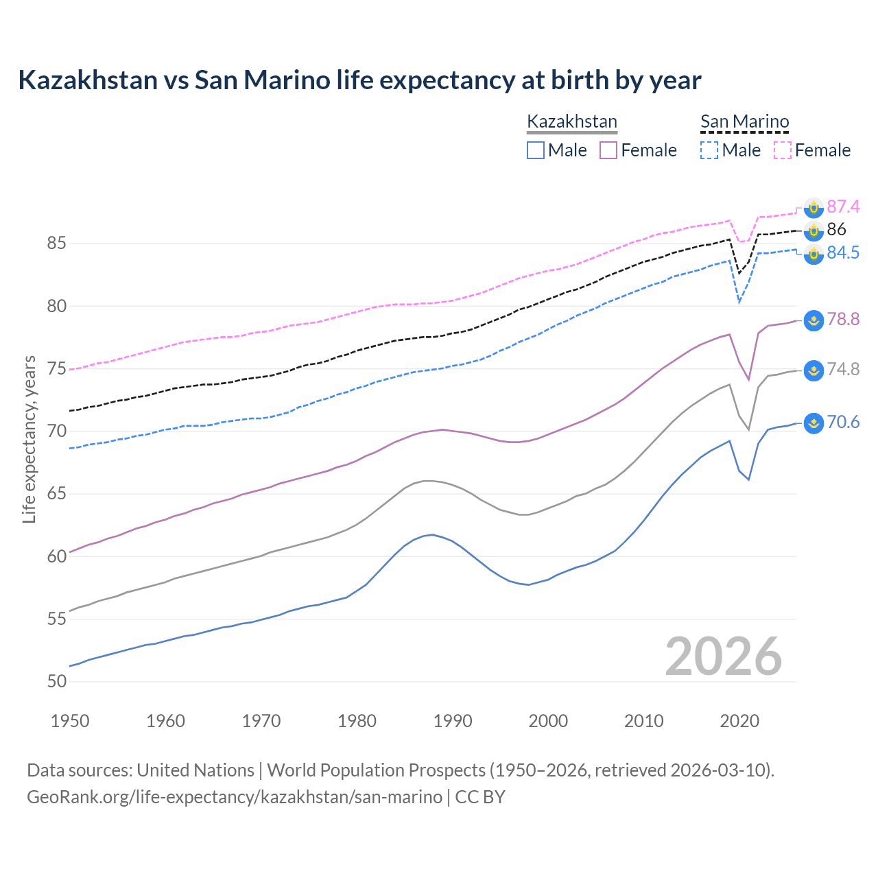 GeoRank.org/life-expectancy/kazakhstan/san-marino | CC BY