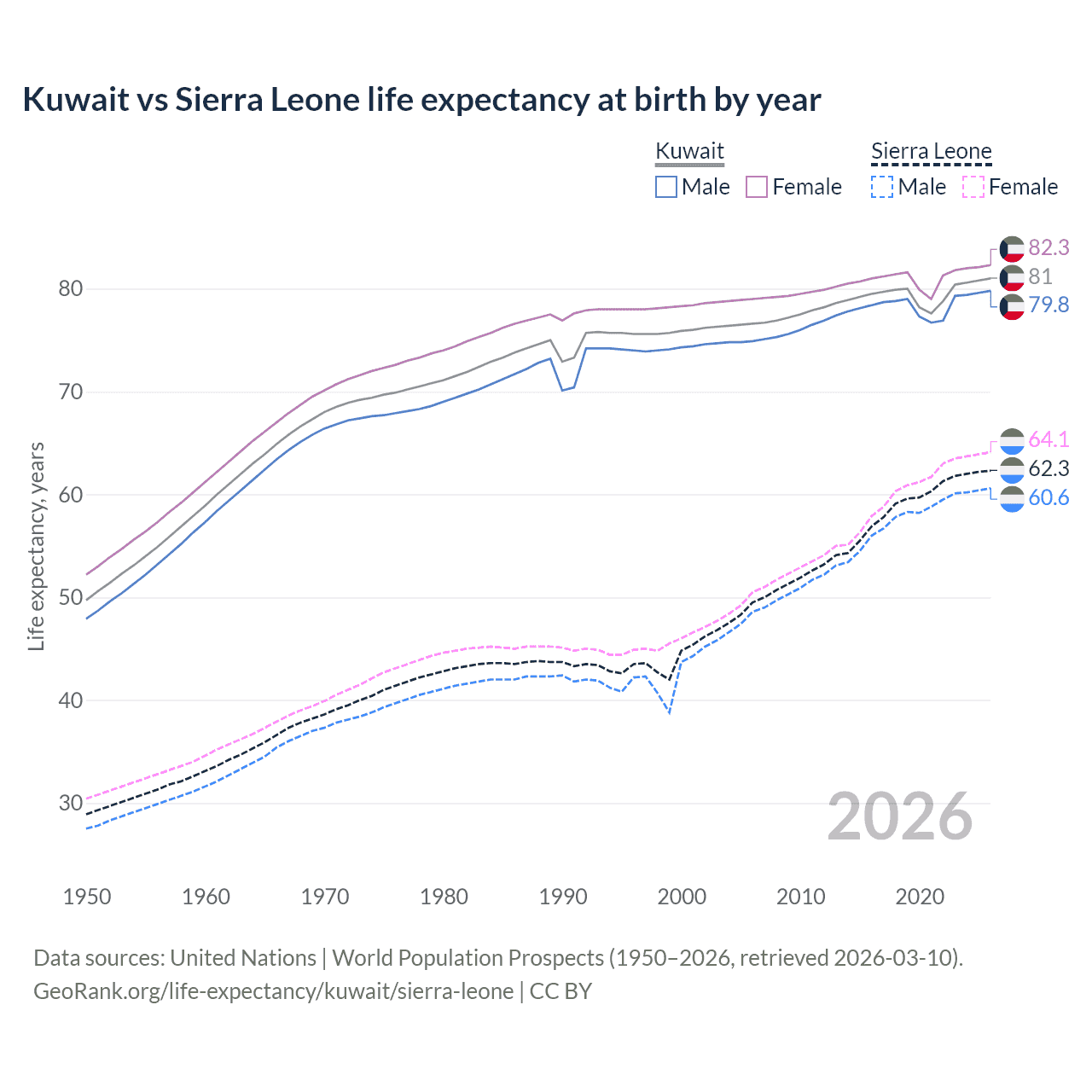 GeoRank.org/life-expectancy/kuwait/sierra-leone | CC BY