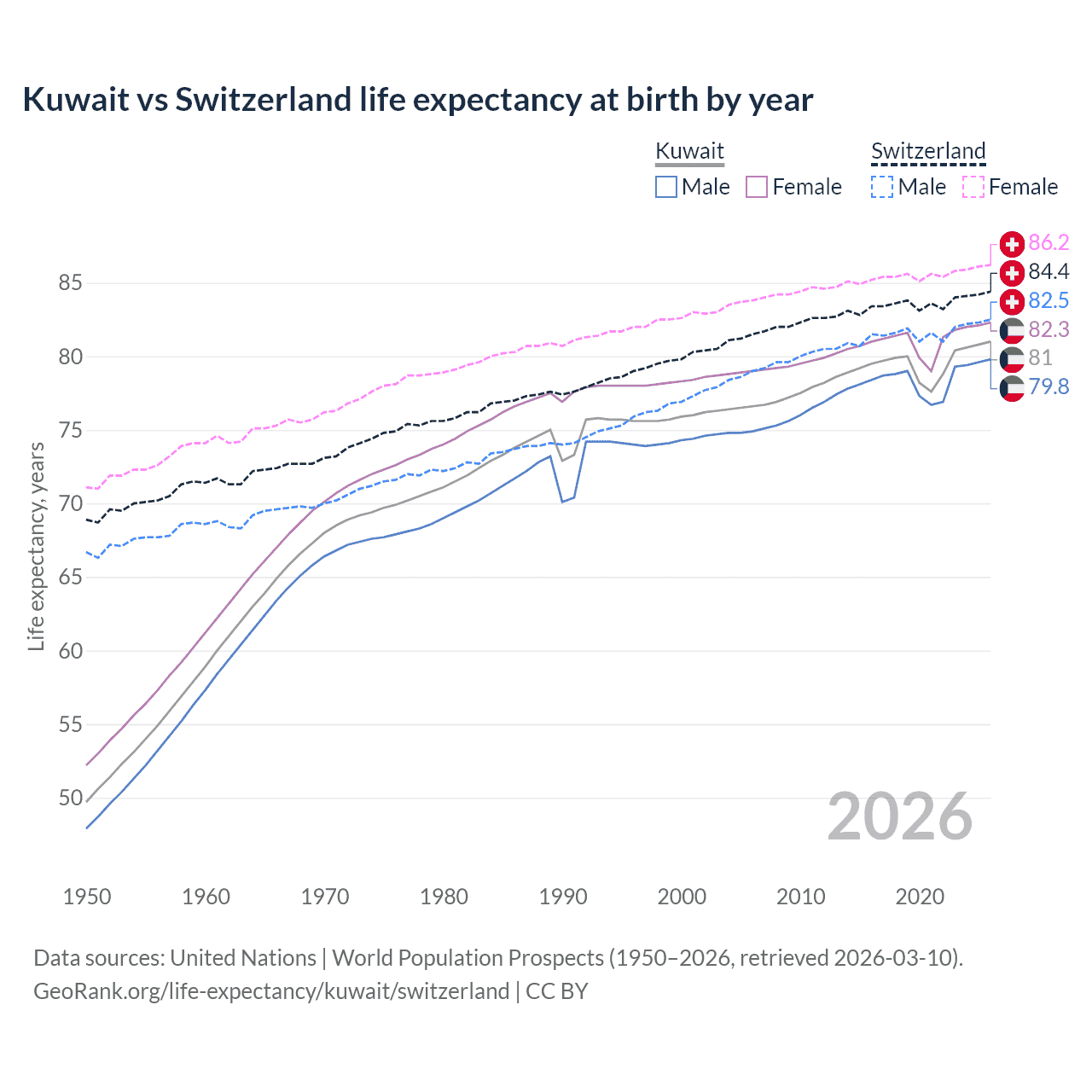 GeoRank.org/life-expectancy/kuwait/switzerland | CC BY