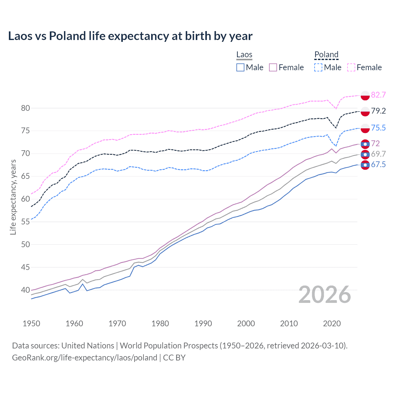 GeoRank.org/life-expectancy/laos/poland | CC BY