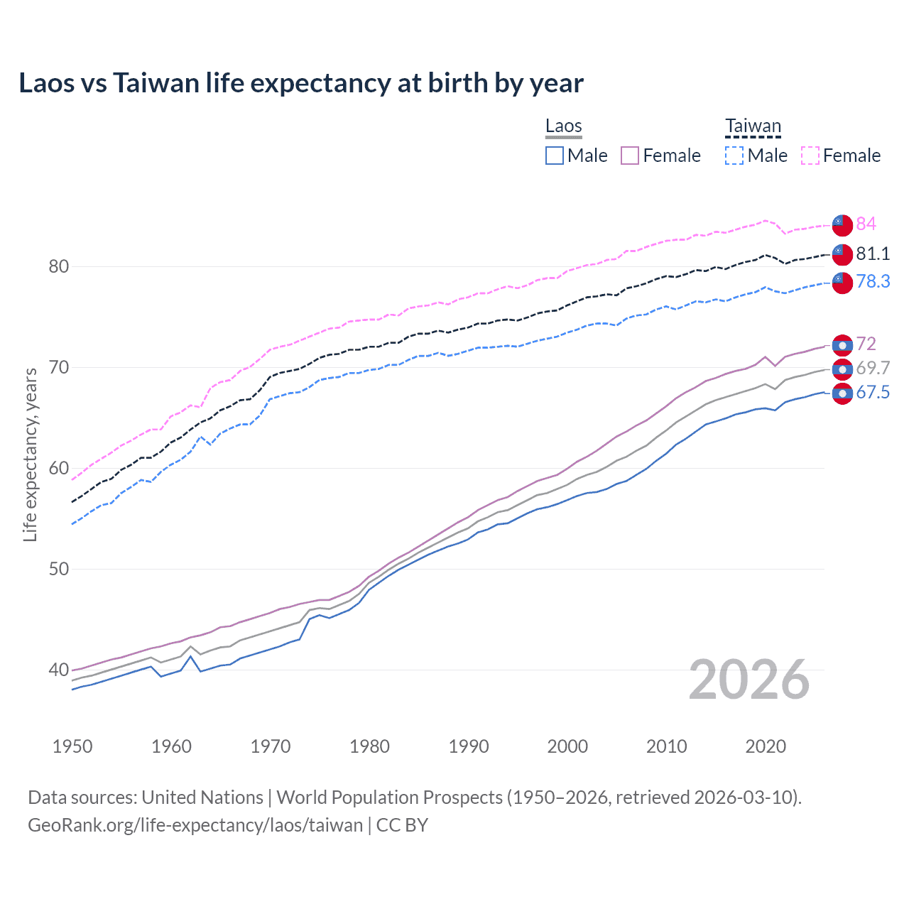 GeoRank.org/life-expectancy/laos/taiwan | CC BY
