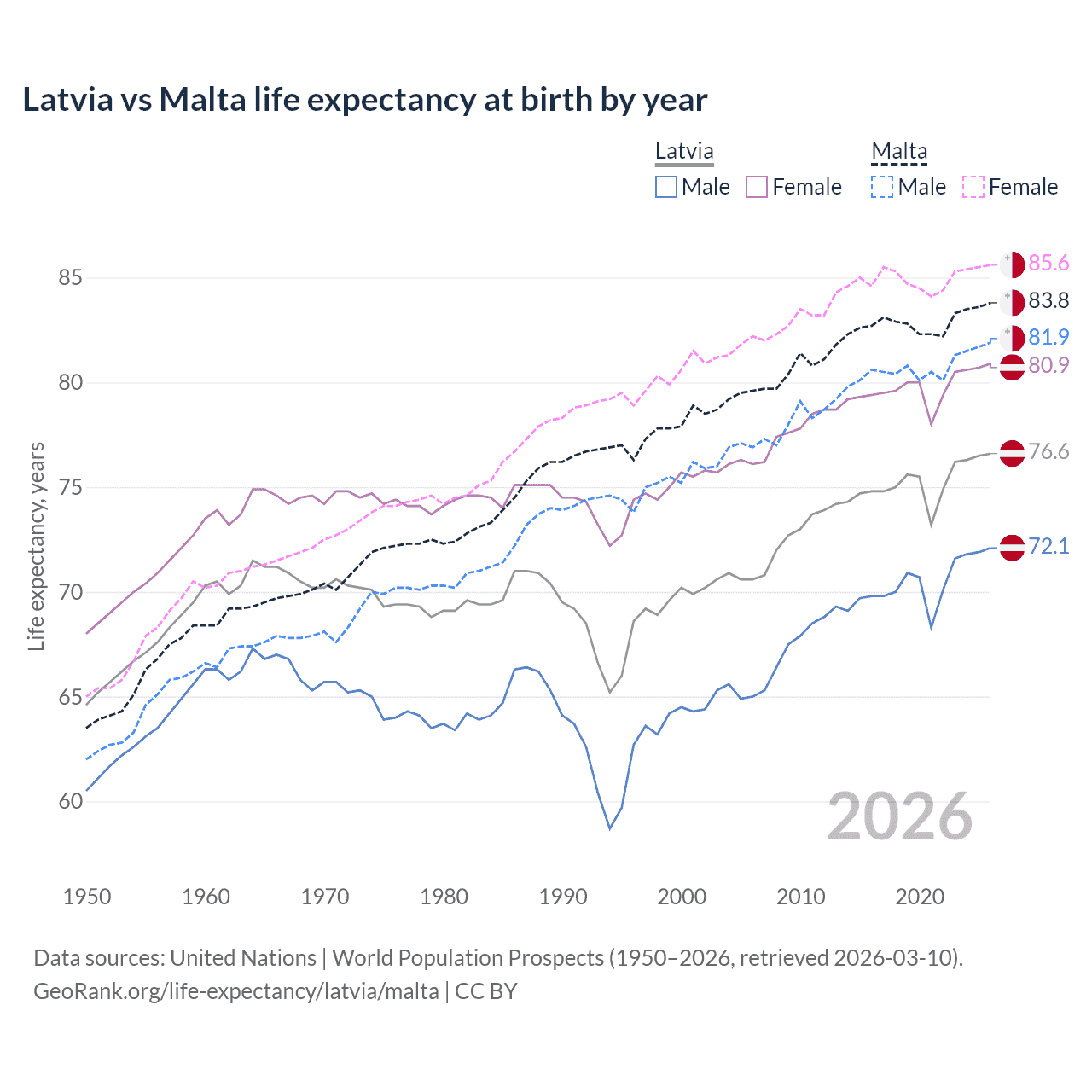 GeoRank.org/life-expectancy/latvia/malta | CC BY