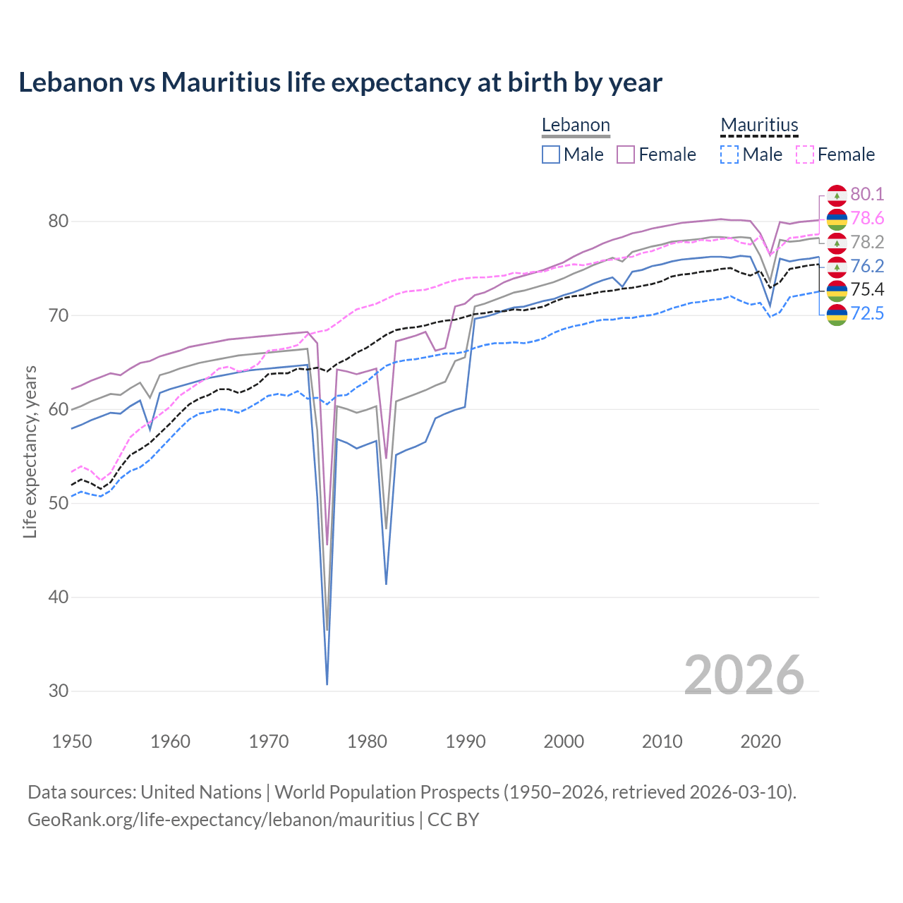 GeoRank.org/life-expectancy/lebanon/mauritius | CC BY