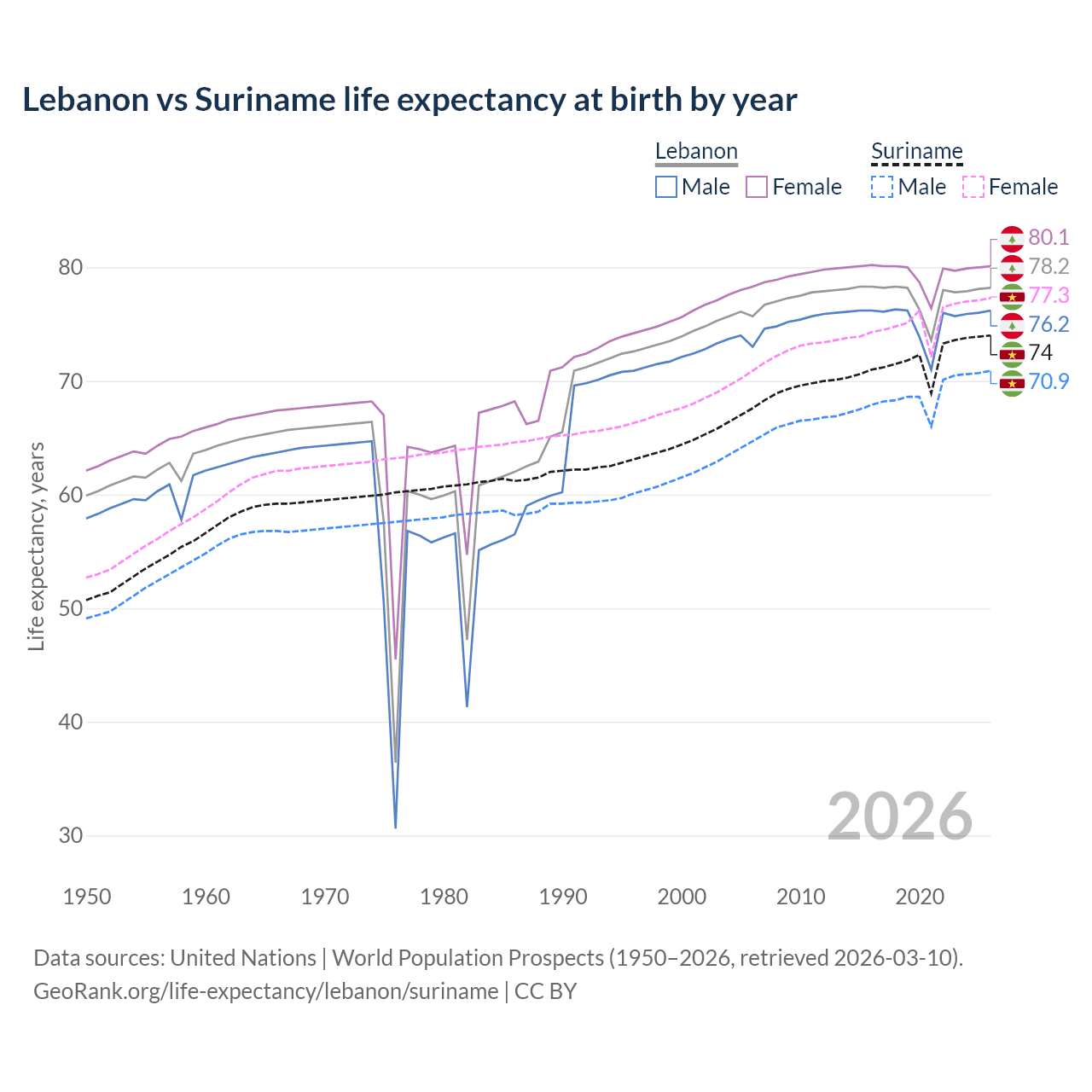 GeoRank.org/life-expectancy/lebanon/suriname | CC BY
