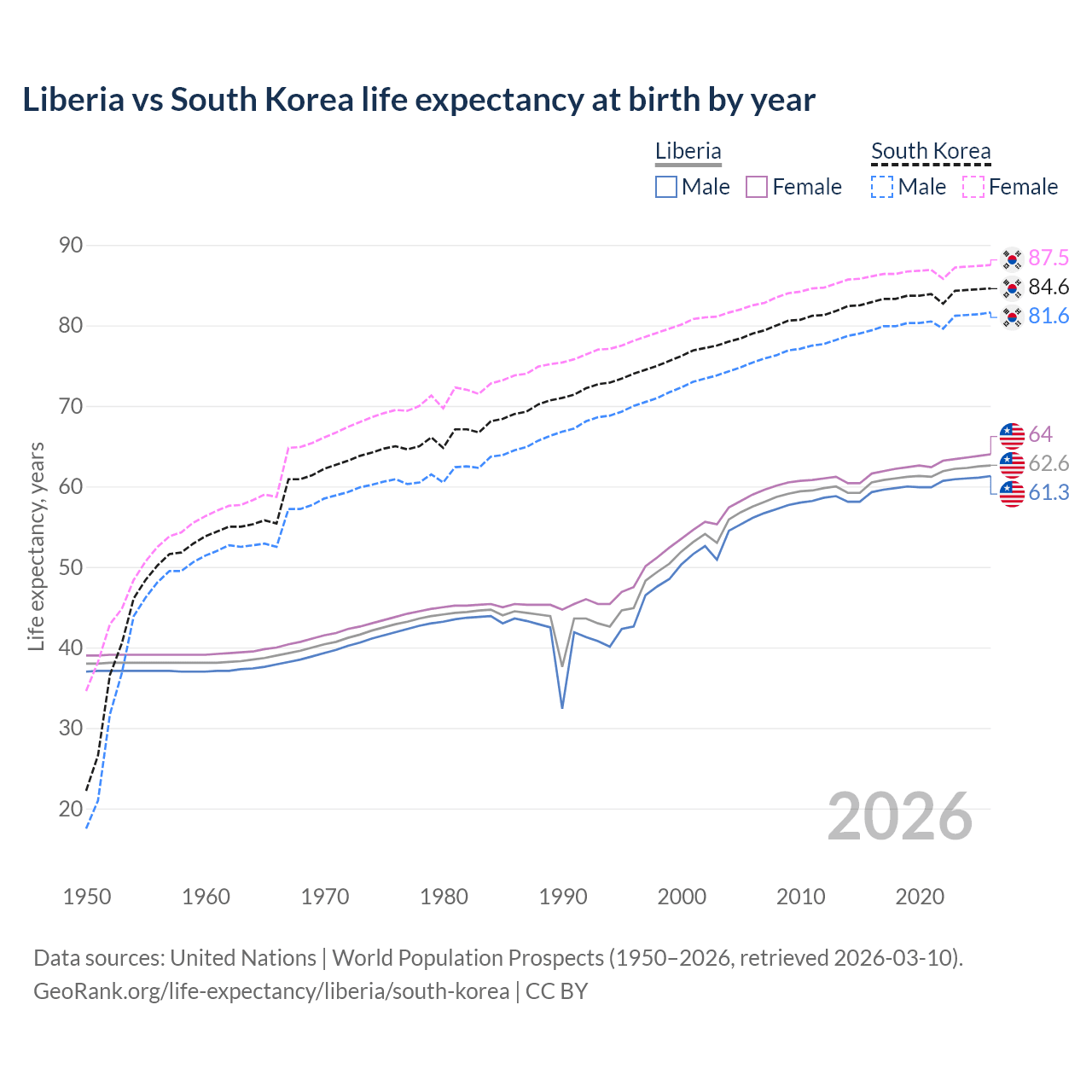 GeoRank.org/life-expectancy/liberia/south-korea | CC BY