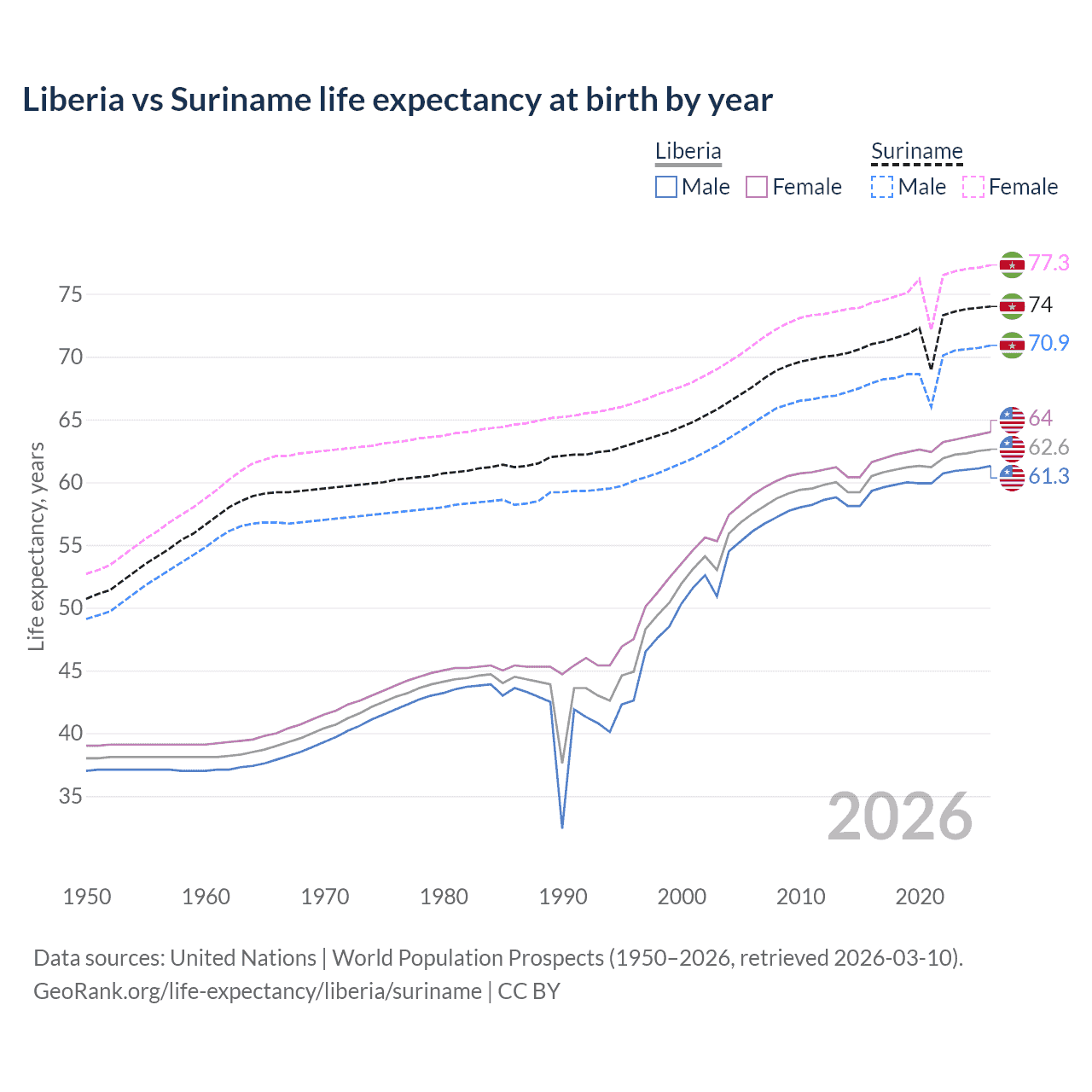 GeoRank.org/life-expectancy/liberia/suriname | CC BY