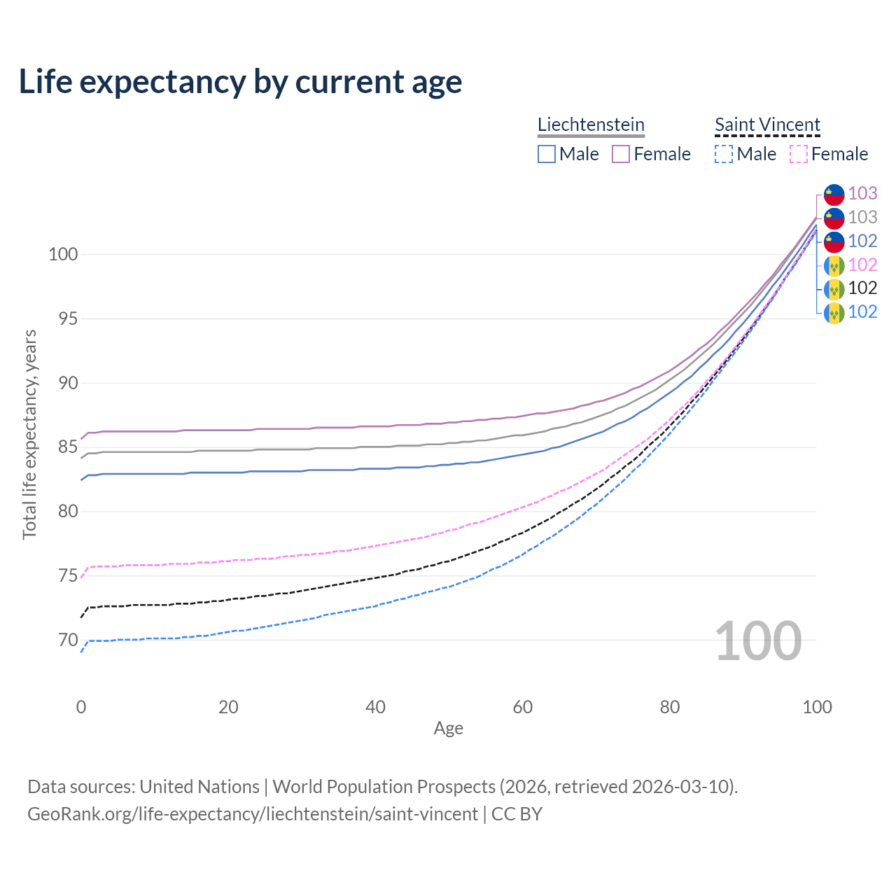 Liechtenstein vs Saint Vincent life expectancy calculator
