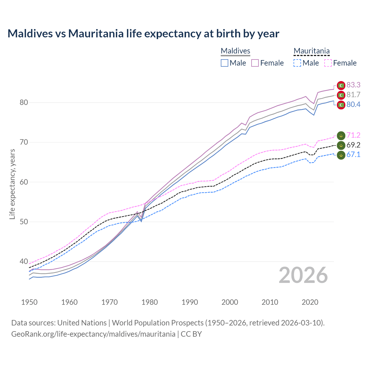 GeoRank.org/life-expectancy/maldives/mauritania | CC BY