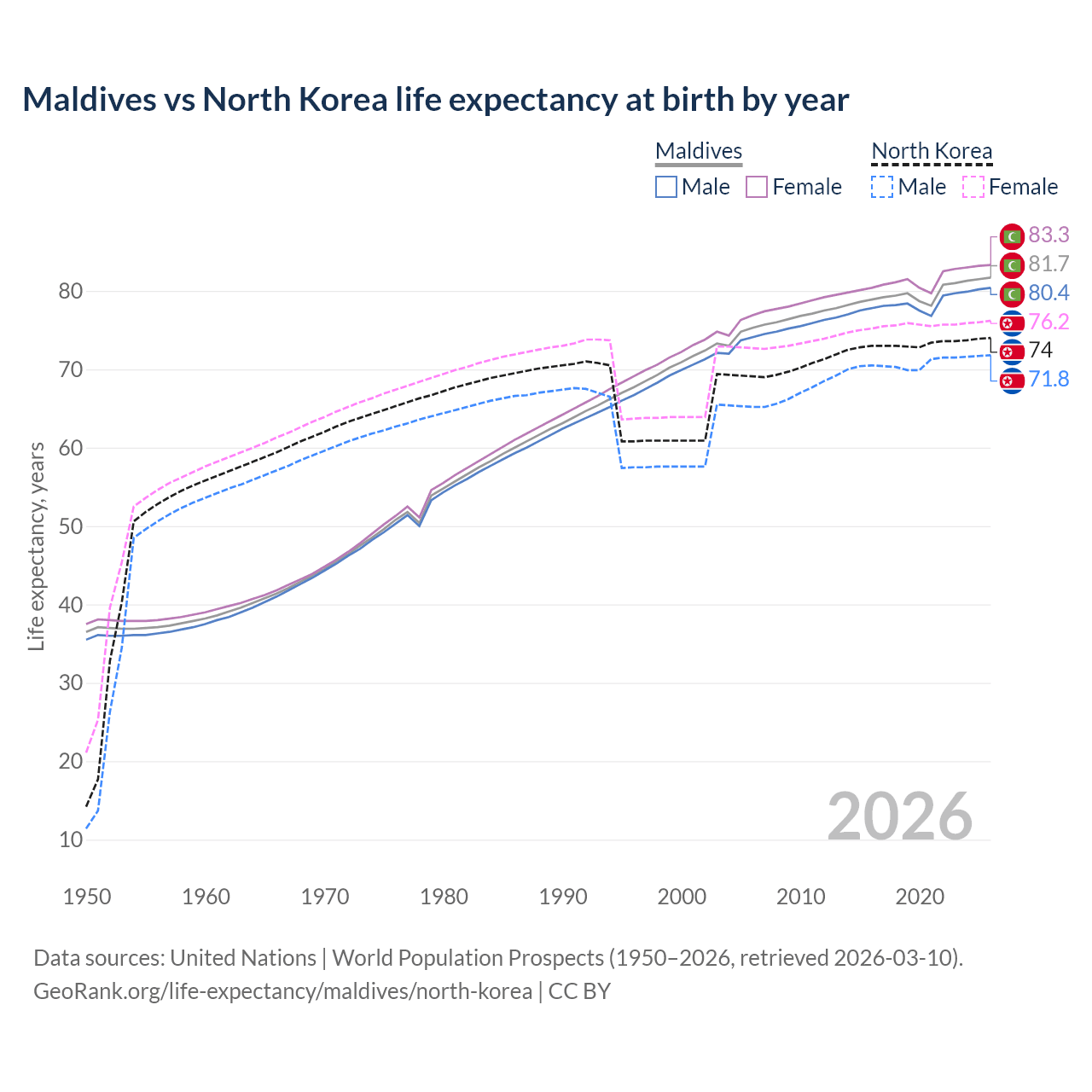 GeoRank.org/life-expectancy/maldives/north-korea | CC BY