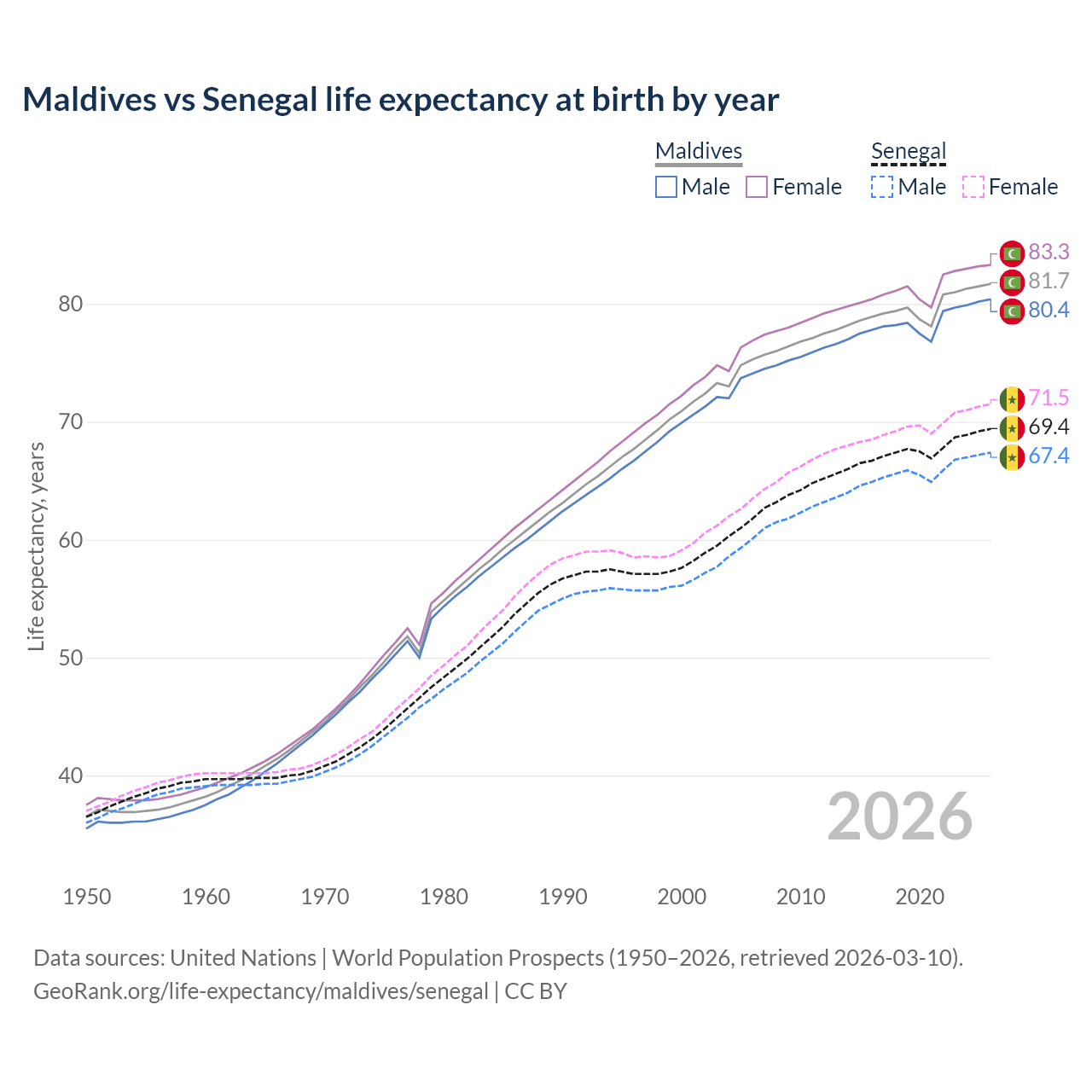 GeoRank.org/life-expectancy/maldives/senegal | CC BY