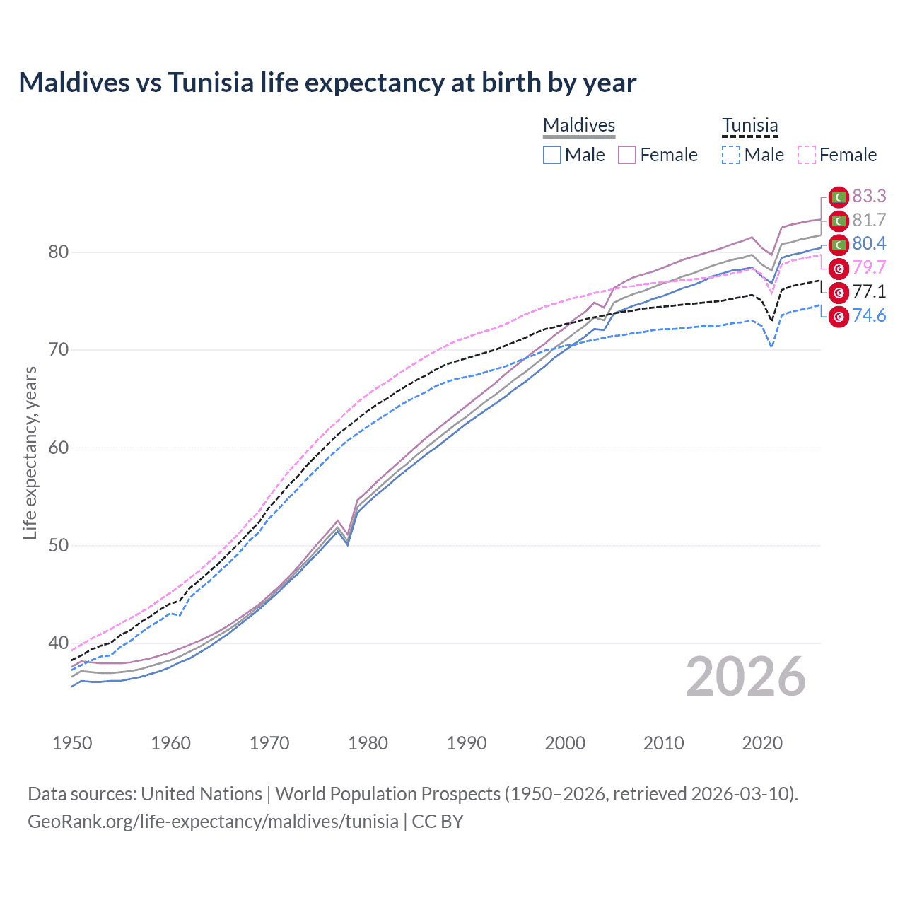 GeoRank.org/life-expectancy/maldives/tunisia | CC BY