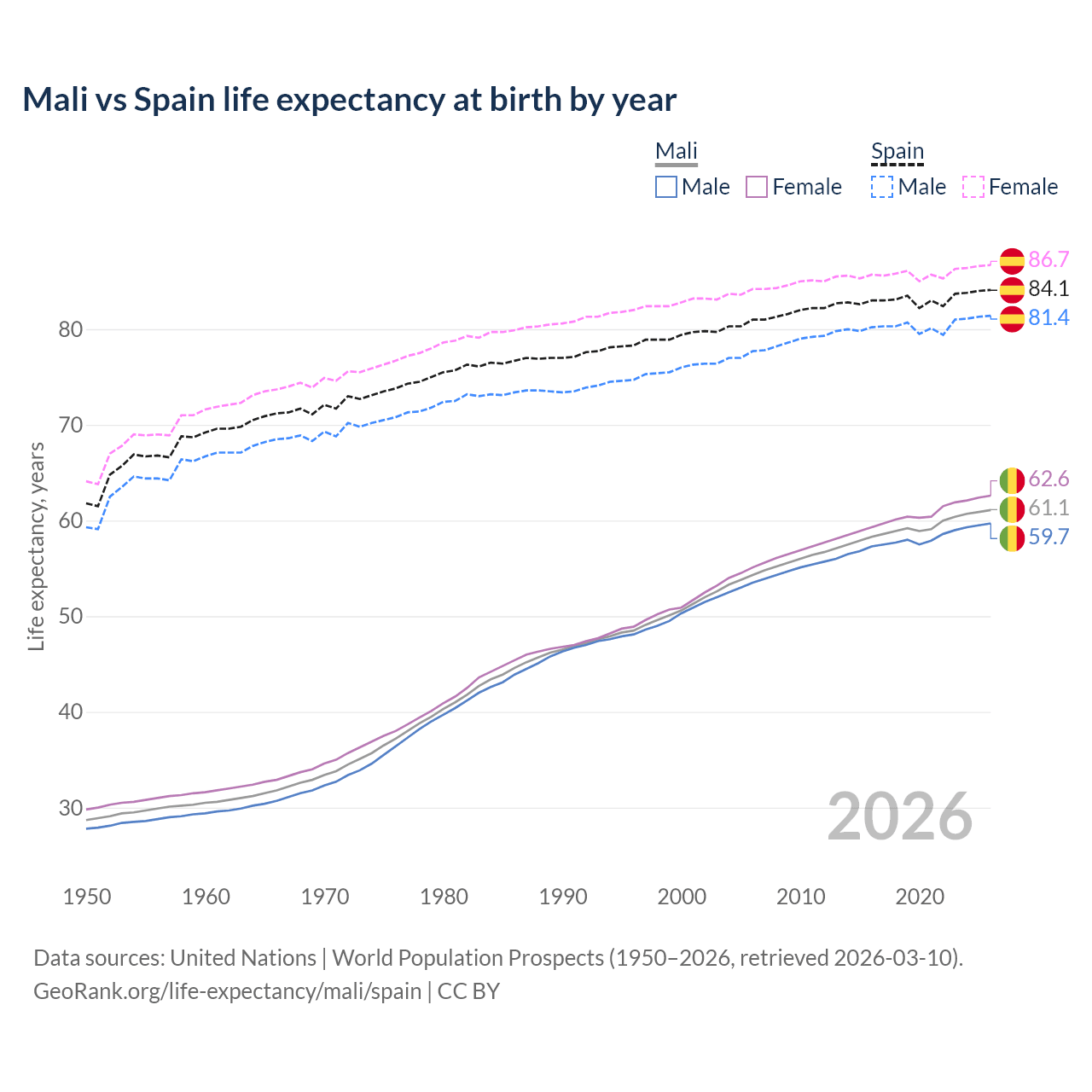 GeoRank.org/life-expectancy/mali/spain | CC BY