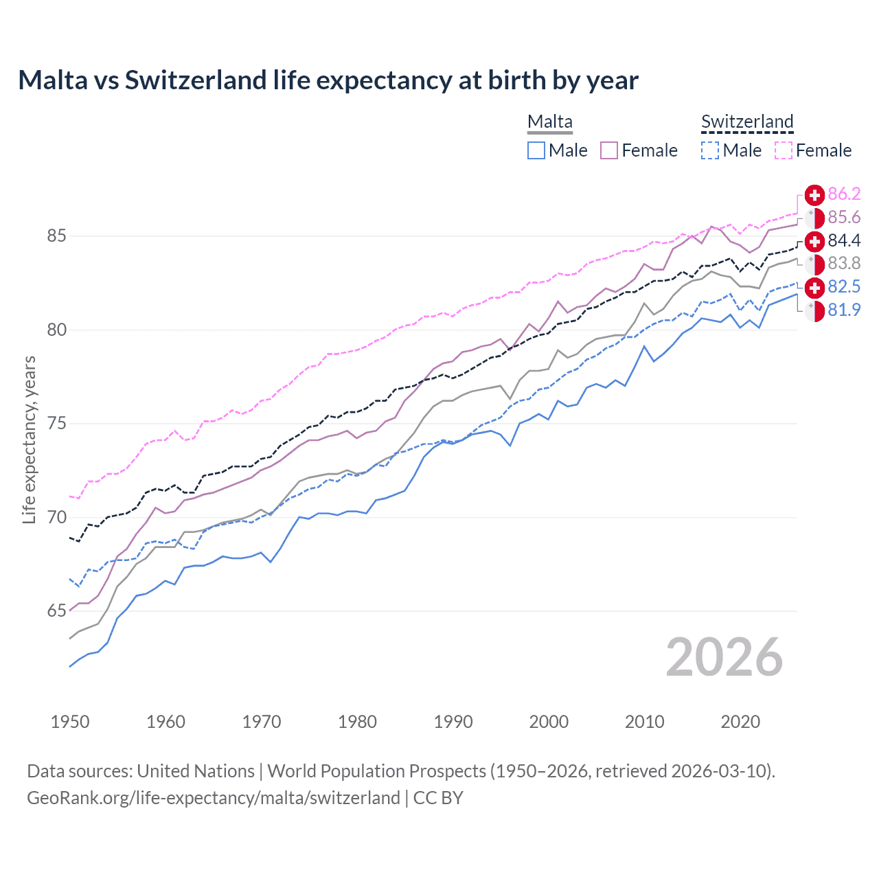 GeoRank.org/life-expectancy/malta/switzerland | CC BY