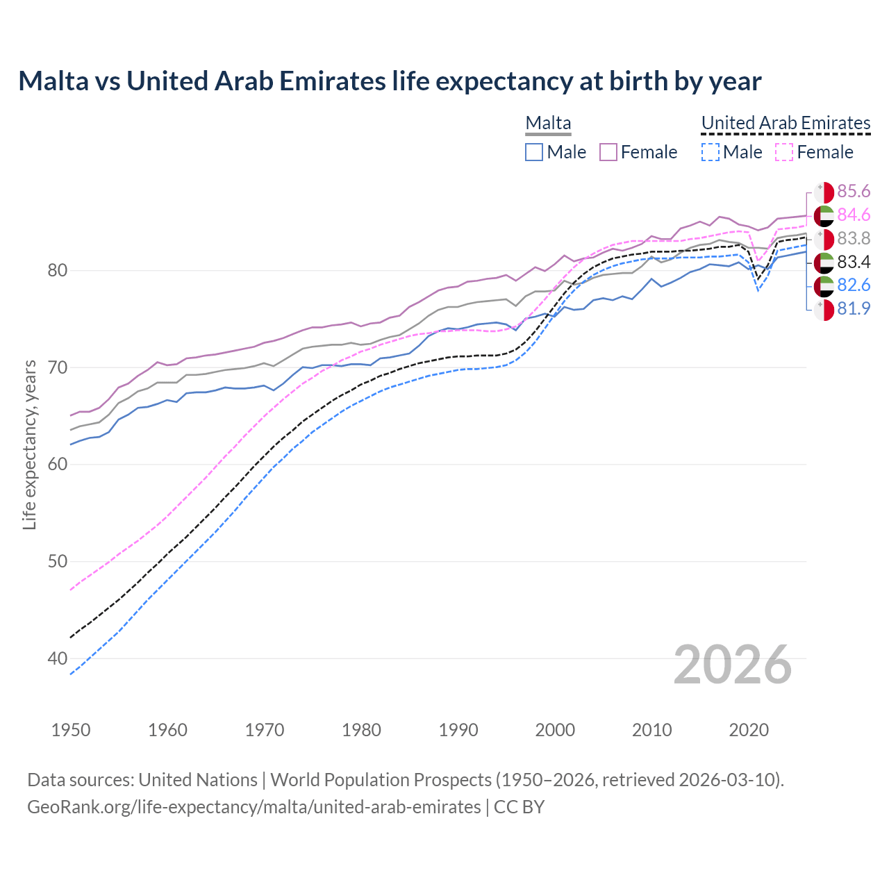 GeoRank.org/life-expectancy/malta/united-arab-emirates | CC BY