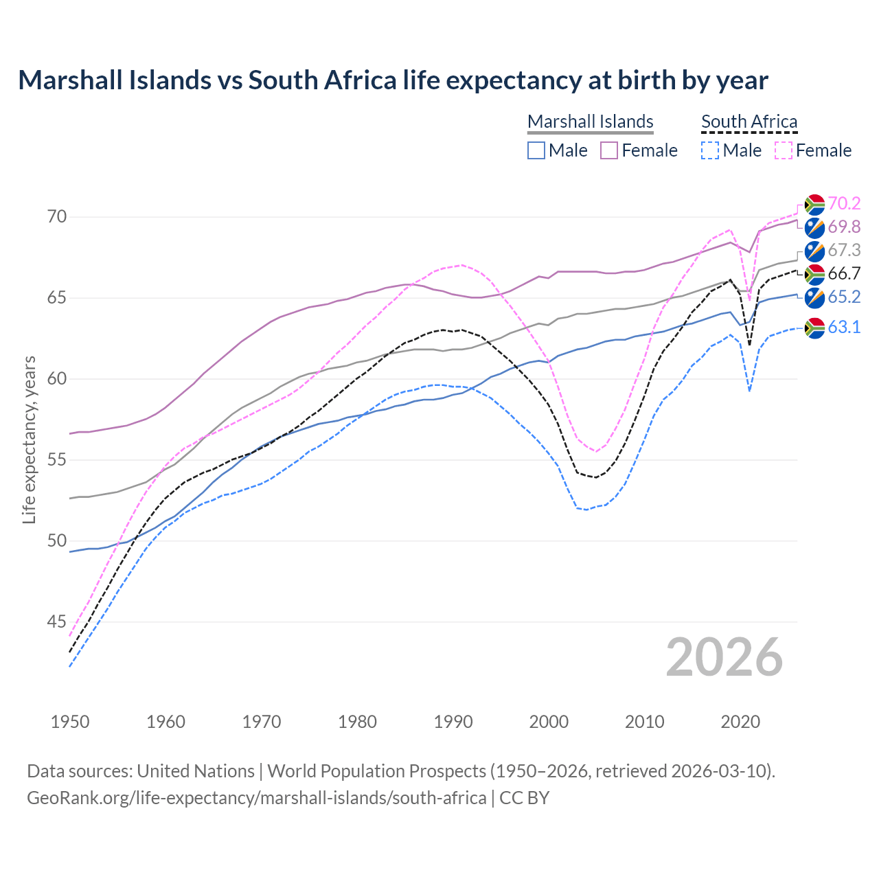 GeoRank.org/life-expectancy/marshall-islands/south-africa | CC BY